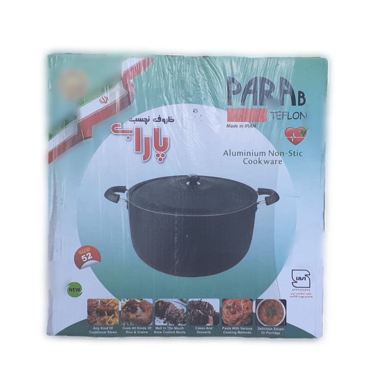 قابلمه سایز52 پاراب موجود می باشد. ظروف پاراب با بدنه های آلمینیومی، رش گرانیت از مواد مرغوب و دسته های نسوز با تحمل درجه حرارت بالا،آشپزی لذت بخشی را برای شما مشتری عزیز به همراه خواهد داشت