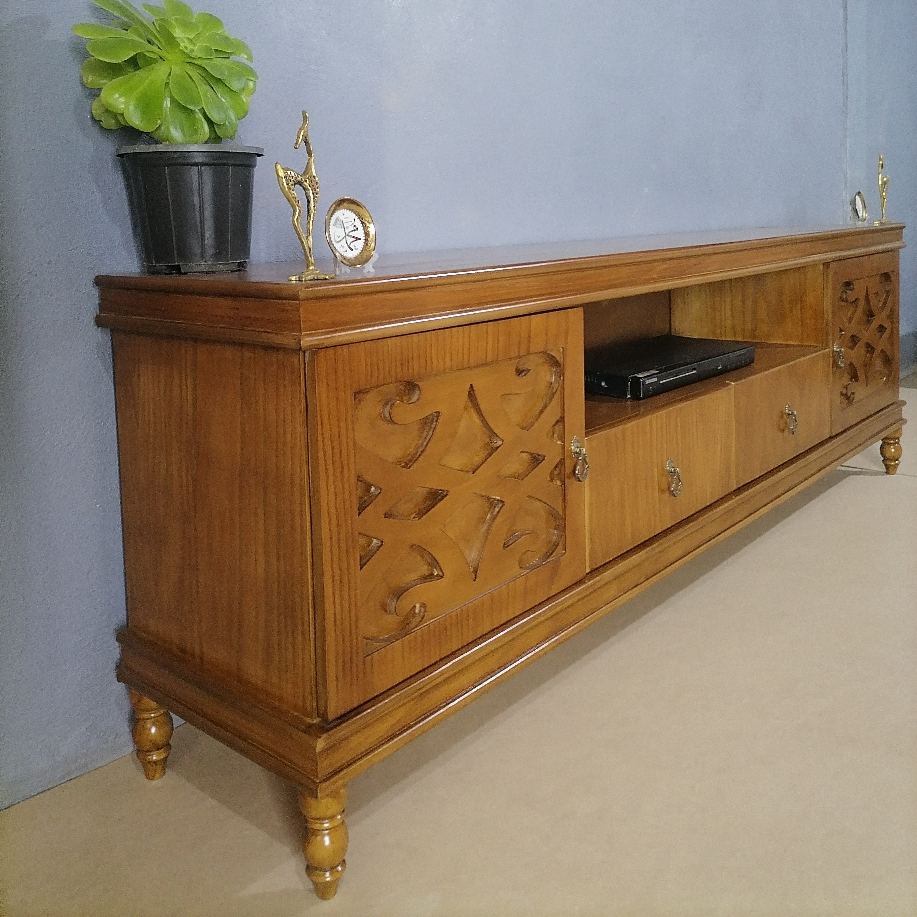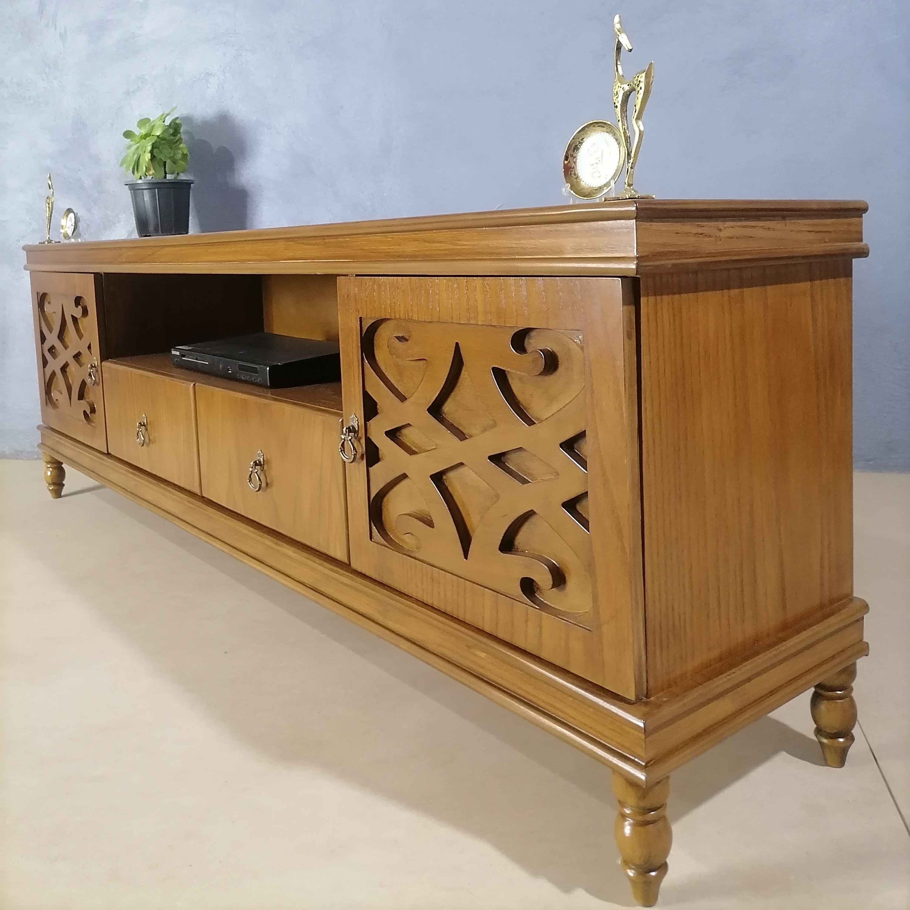 میزتلویزیون سلطنتی کلاسیک قهوه ای سایز دومتری مبلمونسرا مدل 223216