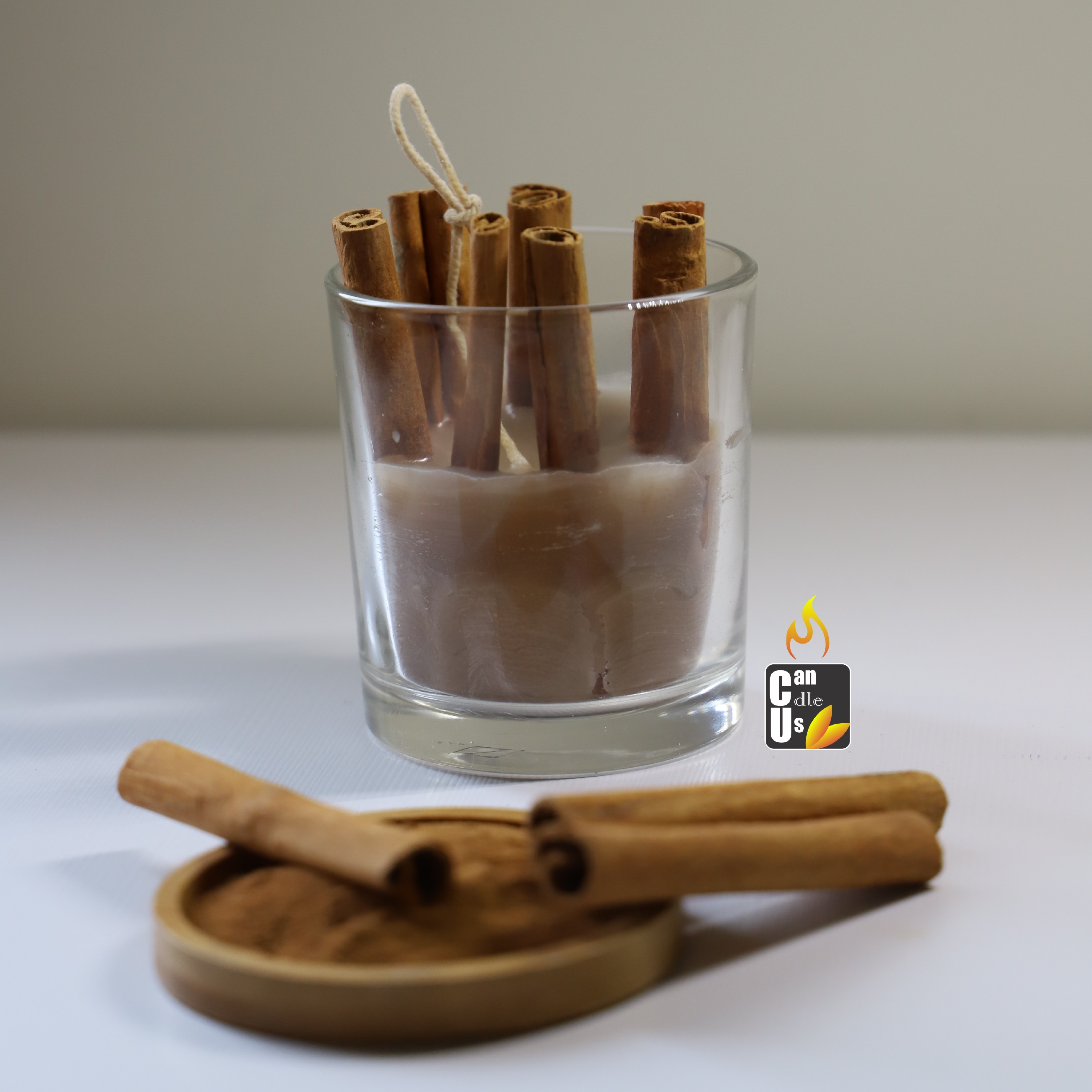 این شمع تهیه شده از پارافين ماکرووکس است که به خوبی به جداره شیشه چسبیده و اصلا از شیشه جدا نمی شود. سوخت بالایی داره هیچ گونه اسانسی در آن به کار نرفته است. بوی طبیعی دارچین به علت داشتن پورد دارچین و چوب دارچین است. بوی دارچین باعث آرامش فضای اطراف میشود.