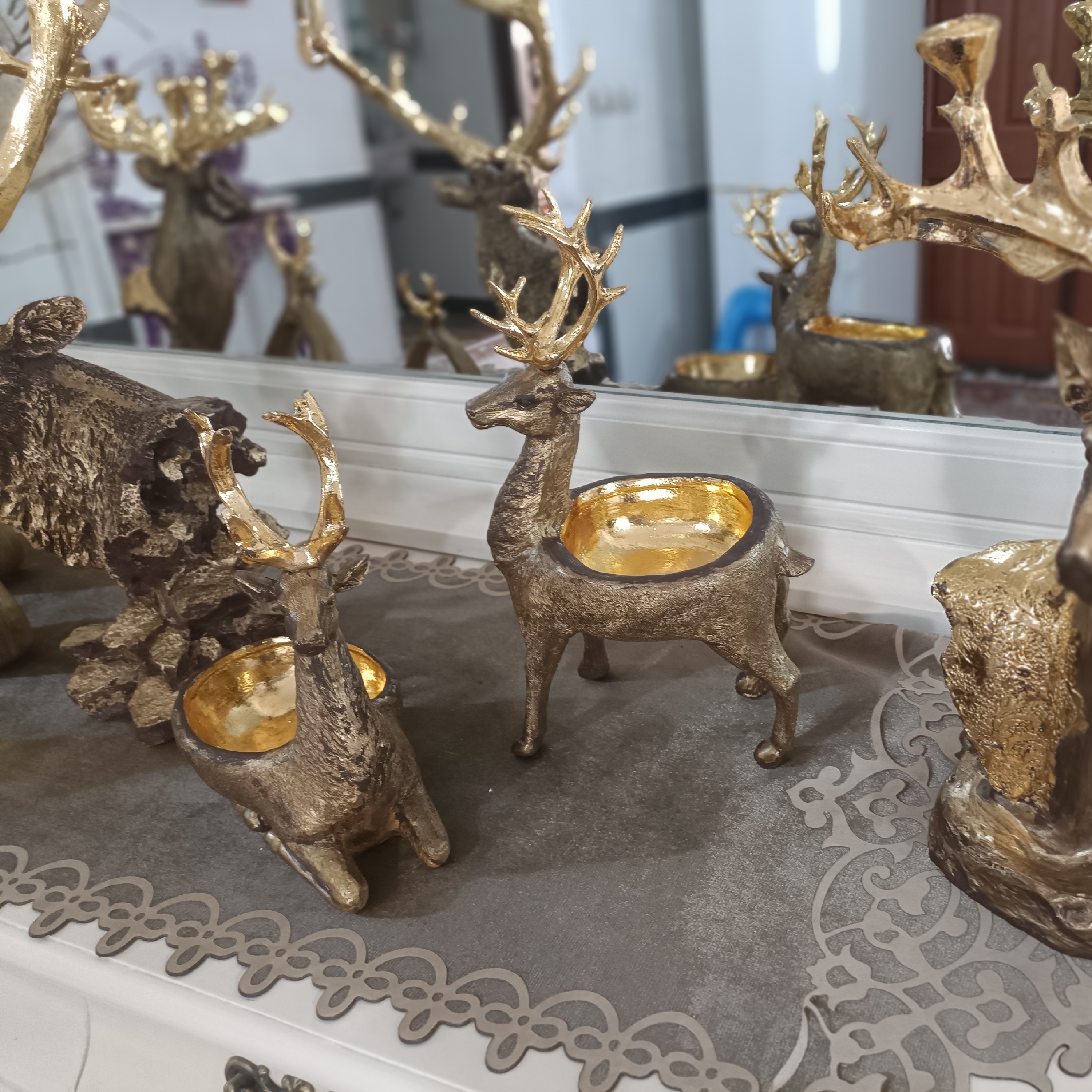 مجسمه گوزن ستهای دیگر هم دارد در صورت تمایل پیام بدید رنگ طلایی مجسمه ها از ورق طلای اصل هست واسه این یکم قیمتش گرونتره قیمت گذاشته شده قیمت دو عددی گذاشته شده قابل توجه مشتریان عزیز که محصول بخاطر سنگین و شکستنی بودنش فقط با اتوبوس از ترمینال ارومیه به نزدیک ترین مکان ترمینال شما ارسال میگردد