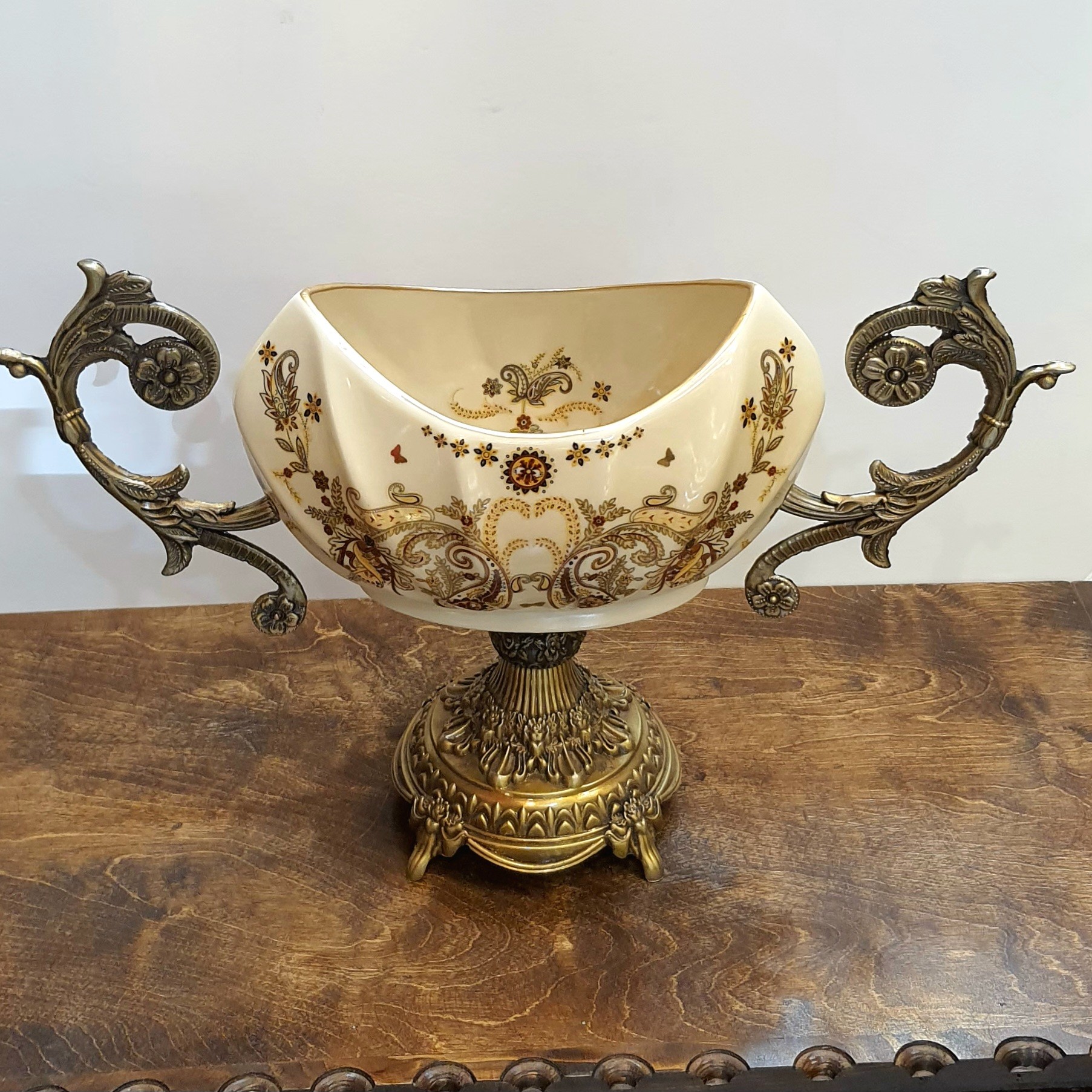 کشکول چینی پایه دار دسته فلزی مبلمونسرا مدل 265065