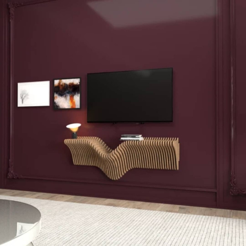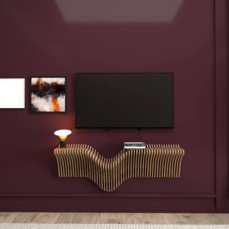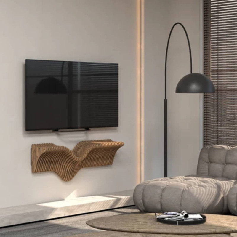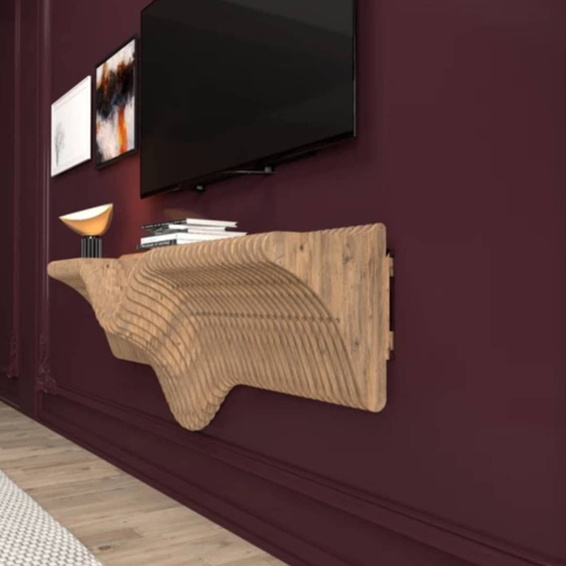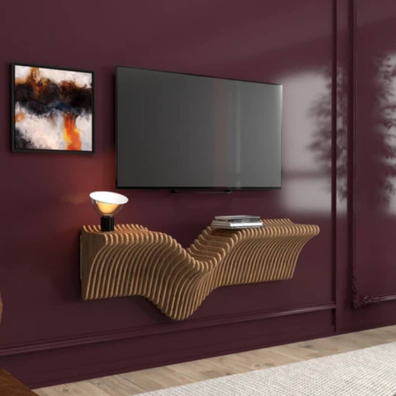 این شلف دیواری، ترکیبی از طراحی مدرن و هنر معاصر است که با الهام از خطوط موجدار، به فضای داخلی خانه شخصیت ویژهای میبخشد. بدنه آن از چوب MDF ساخته شده که به صورت تیغههای موازی و پیوسته در کنار هم قرار گرفتهاند. این تیغهها با ایجاد انحنا در بخش میانی، حسی از حرکت و پویایی را القا میکنند؛ گویی موجی چوبی در دیوار جاری شده است.