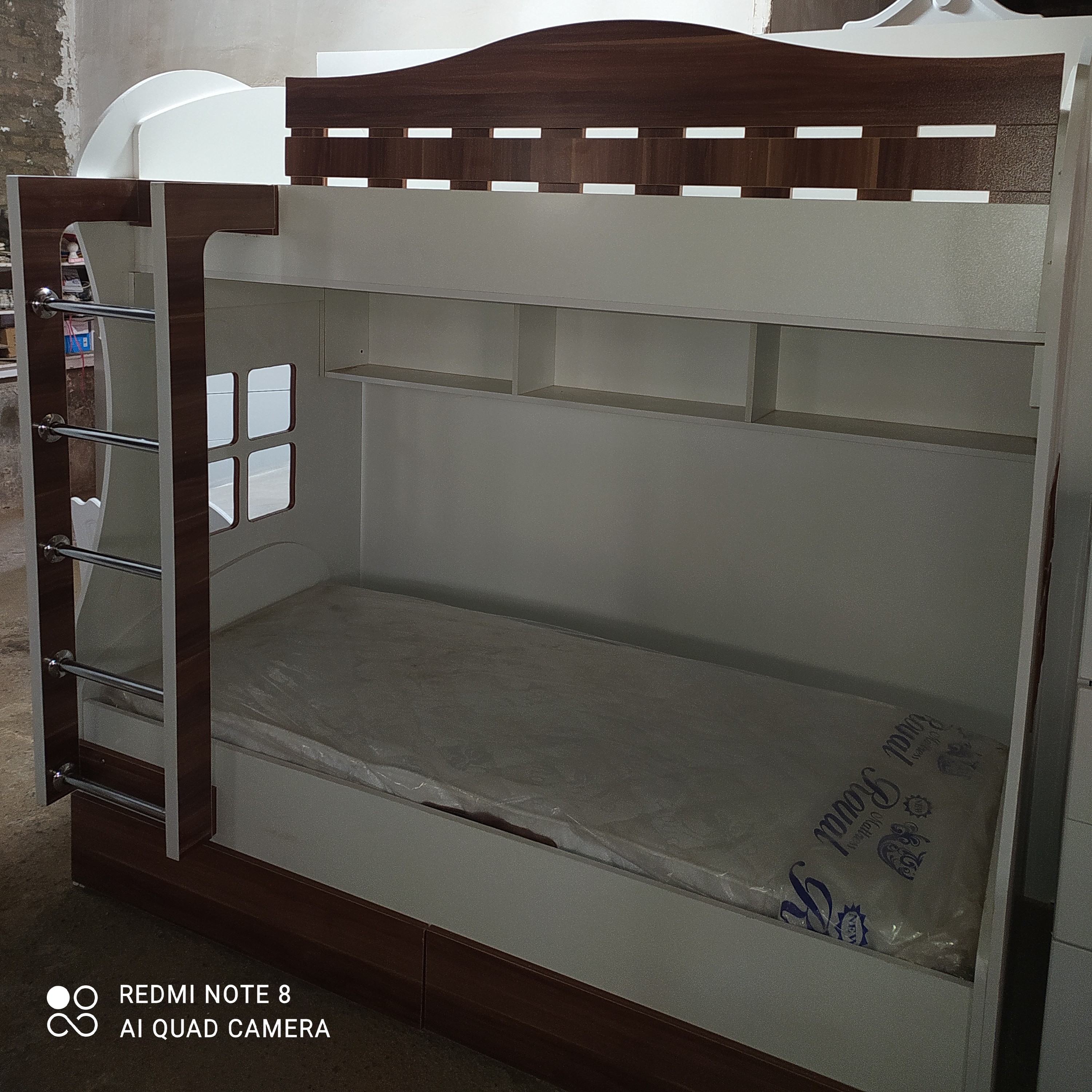 تخت دوطبقه نردبانی مناسب برای اتاقهای کوچک فضای تشک 80*180 هزینه حمل بار به عهده مشتری میباشد کامل ملامینه پویا
