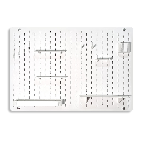 دیواری با ابعاد 55در80سانتیمتر انتخابی کاربردی و زیبا برای نظم دهی به فضای کاری یا دکوراسیون منزل است. این پکیج شامل ۴ طبقه با ابعاد ۳۰در۱۰،۲۰در۶ ۲عدد،۱۰در۶سانتیمتر بوده که امکان چیدمان متنوع وسایل فراهم میکند.همچنین ۴ عدد قلاب برای آویزان کردن اکسسوری در نظر گرفته شده است.بعنوان هدیه،یک شلف اضافی با ابعاد ۳۰در۱۰سانتیمتر ویک جامدادی همراه محصول ارائه میشود.بسته نصب شامل ۴ عدد پیچ رول پلاک ،۴ عدد فاصله دهنده و ۴عدد گل پیچ تزیئنی است که علاوه بر نصب ان ،جلوه ای زیبا به میبخشند. این محصول با طراحی مینیمال و کیفیت ساخت بالا ،گزینه ای مناسب برای افرادی است که به نظم ،زیبایی و کارایی اهمیت می دهند.