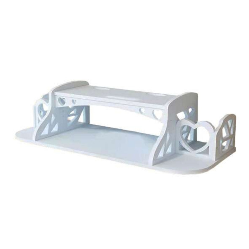 شلف دیواری زیر تلویزیونی طرح قلب ، دارای چهار فضای مجزا می باشد . محفظه اصلی مناسب برای قرار گرفتن دستگاه دی وی دی ، گیرنده دیجیتال و ... طراحی شده ، بر روی این محفظه می توانید وسایل تزئینی و یا حتی دستگاه های کوچکی نظیر مودم را جای دهید ، در دو طرف محفظه اصلی نیز محفظه های کوچکی قرار داده شده که از آنها می توانید برای نگهداری کنترل دستگاه ها و یا حتی وسایل تزئینی سبک و فانتزی استفاده کنید . این محصول از جنس PVC با کیفیت بسیار بالایی تولید شده که در برابر آب و رطوبت کاملاً مقاوم است . بنابراین به سادگی می توانید آن را تمیز و یا حتی در صورت نیاز بشویید . استفاده از این شلف ، زیبایی و جذابیتی خاصی را در محیط منزل شما به وجود می آورد.