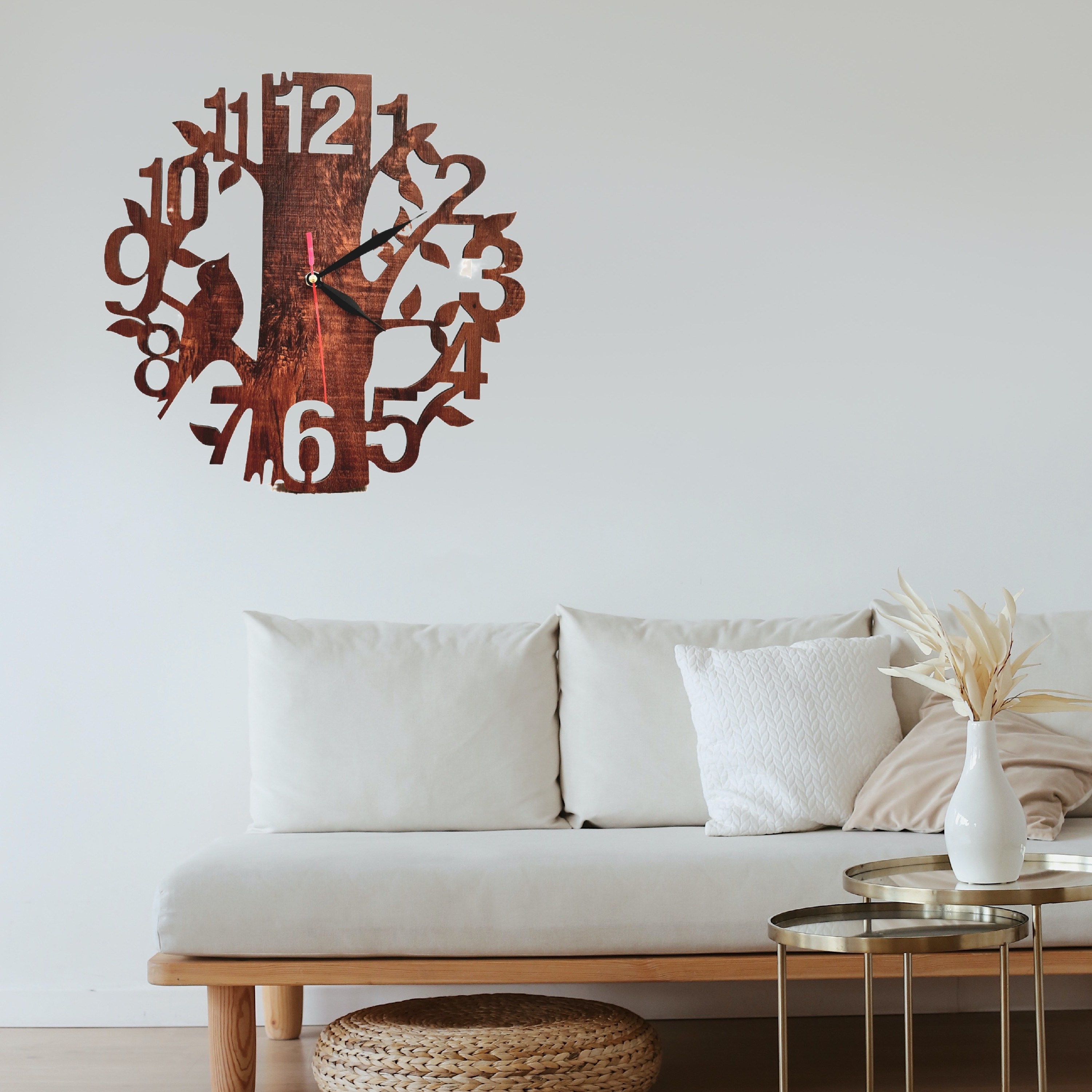 ساعت دیواری طرح درخت مناسب برای اتاق خواب،سالن ها، ... دارای موتور روانگرد کاملا بی صدا رنگ بندی با سفارش شما میتونه تیره یا روشن باشه قطر کار ۳۵ سانت