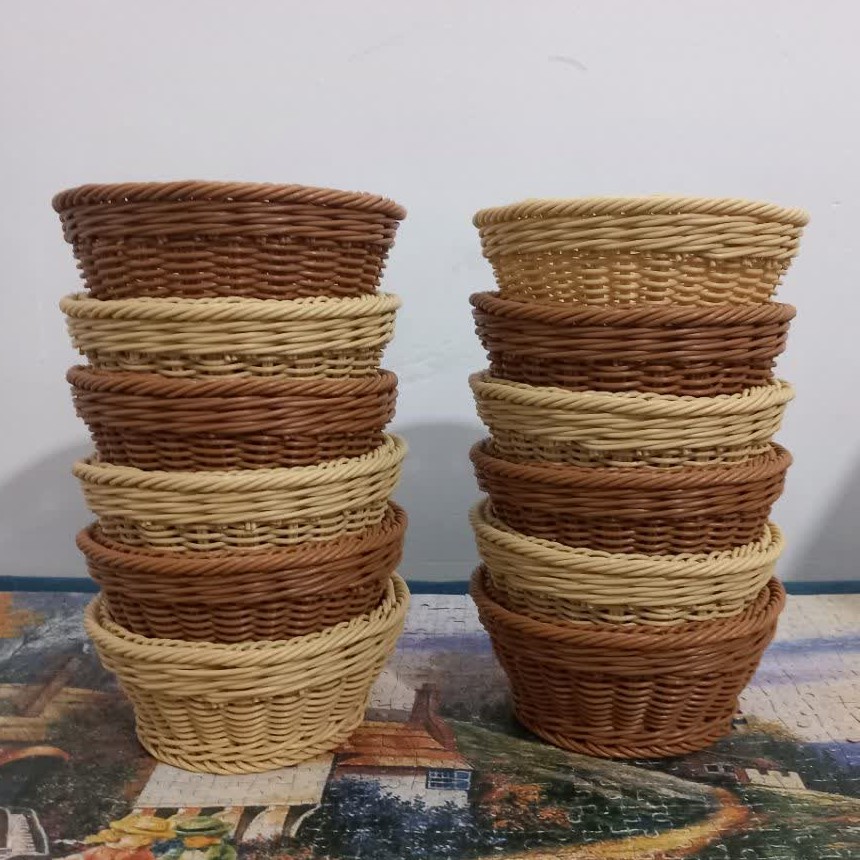 سبد سبزی لب ساده زیبا دست بافت وقابل شستشو جنس پلاستیکی رنگ ثابت و رنگ ترکیبی