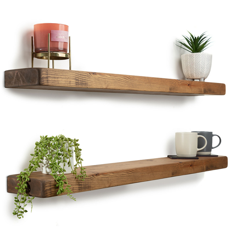 این شلف ساخته شده از چوب روسی درجه یک و خشک کن رفته می باشد. برای اتصال آن به دیوار از اتصال مخفی استفاده شده که مانند عکس های کالا شما هیچگونه پایه ای مشاهده نمی کنید. به همراه این شلف 2 عدد اتصال مخفی می فاده می شود که برای نصب استفاده می شود. نصب این شلف بسیار ان بوده و کاملا مستحکم می باشد. جهت نصب باید دیوار را سوراخ کرده و از رول پلاک و اتصال مخفی همراه کالا استفاده کنید. سپس شلف را به راحتی به دیوار نصب نمایید. رنگ این کار به دو صورت قهوه ای و بیرنگ اراِیه می شود. رنگ قهوه ای مانند رنگ عکس می باشد ولی ممکن است درصدی با رنگی که شما در مانیتور می بینید متفاوت باشد.
