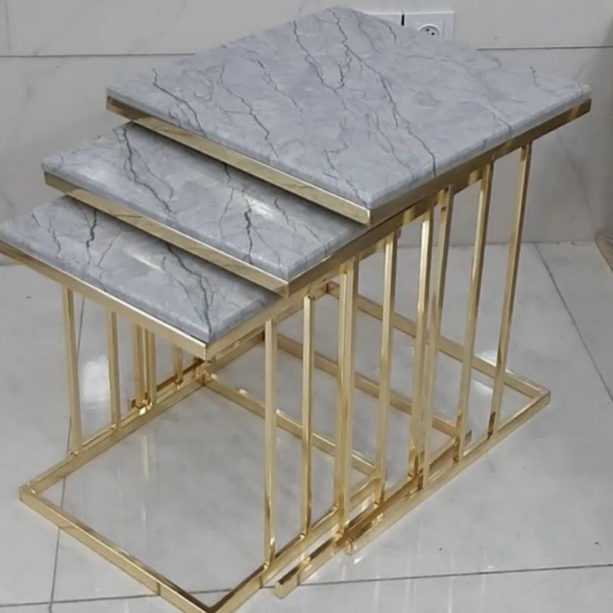 میز عسلی کم جا مربع فلزی سه عددی مبلمونسرا مدل 221000