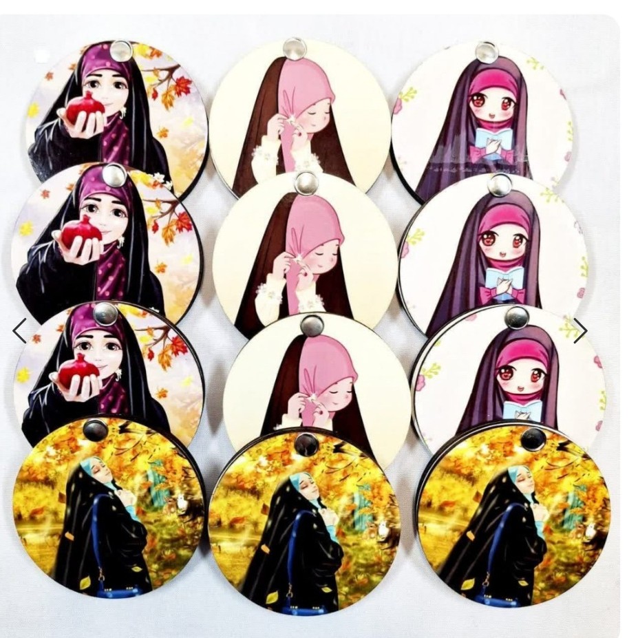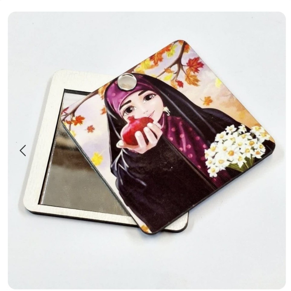 آینه کیفی چوبی کشویی دایره ای و مربعی شکل طرح حجاب شیک و جذاب هدیه ای با قیمت مناسب مناسب برای کار فرهنگی و تبلیغ حجاب