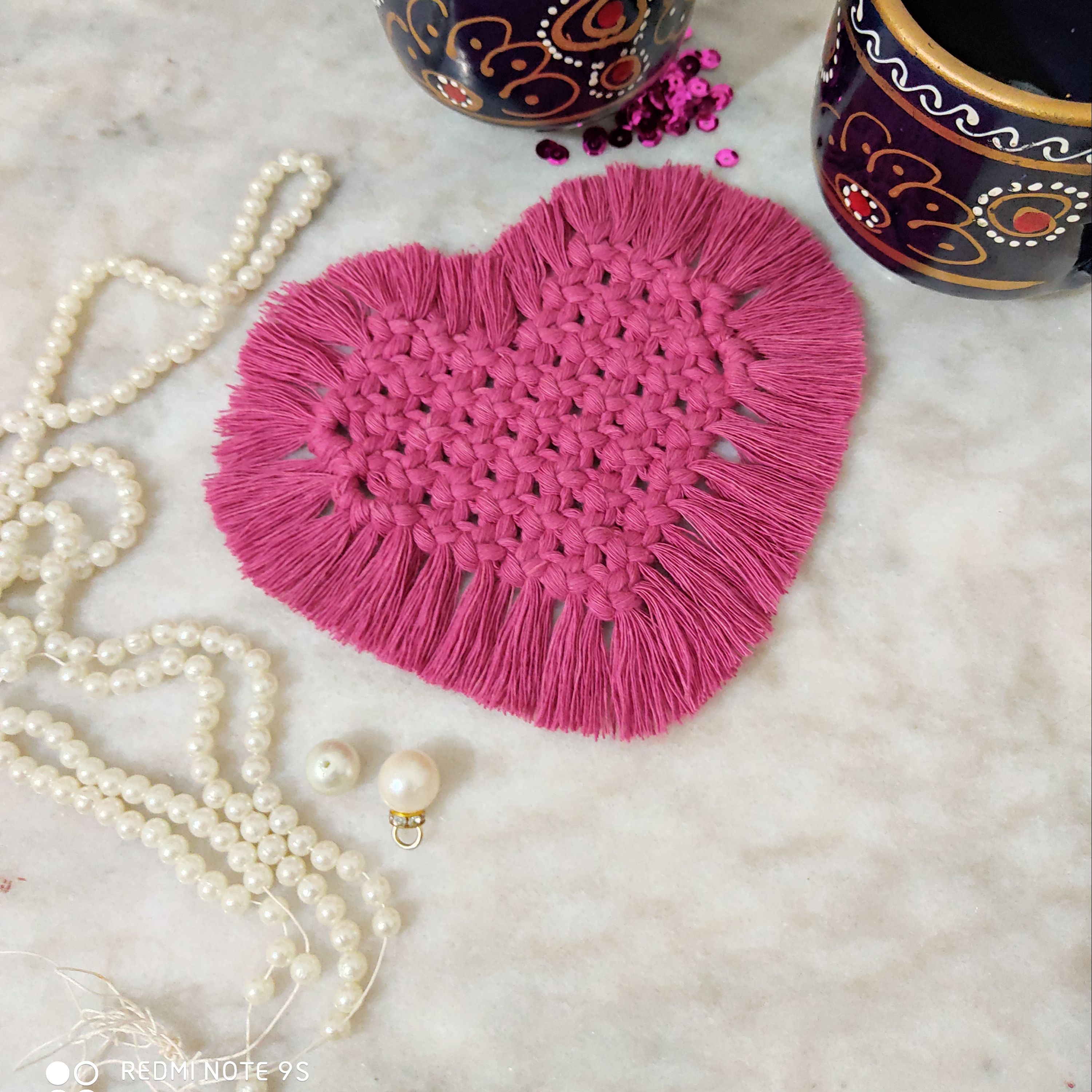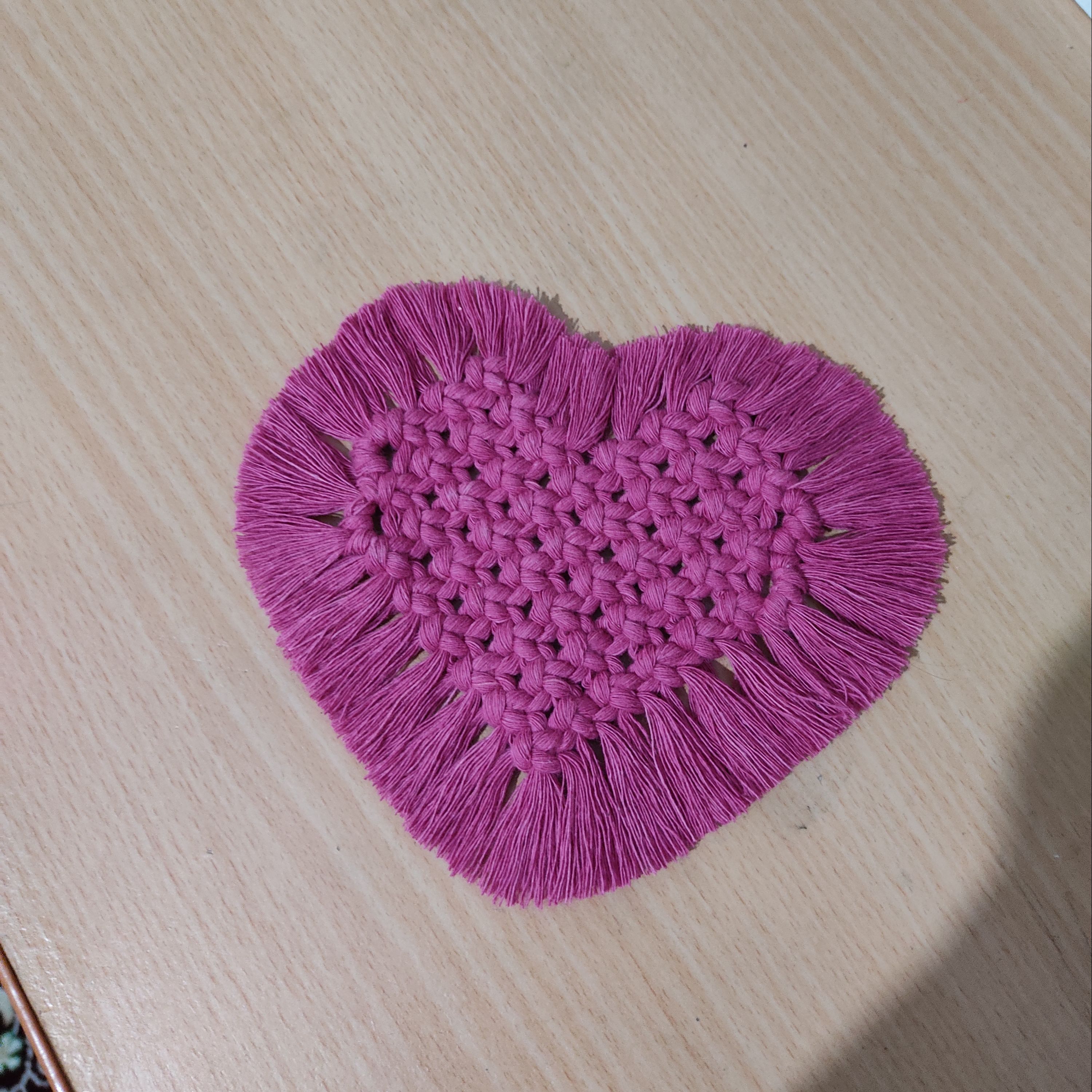 زیرلیوانی به شکل قلب از جنس نخ پنبه وسط کار بافت ودور آن ریشه دارد رنگ سرخابی تیره تمام شده و رنگبندی متنوع موجود میباشد ابعادبا درنظرگرفتن ریشه ها 13×16 امکان تنوع رنگ مطابق سفارش مشتری