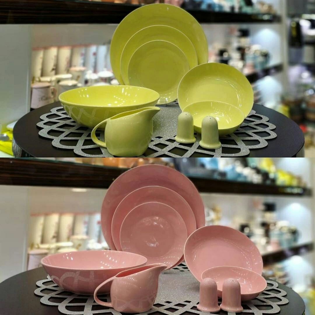 سرویس سرامیکی رنگی شش نفره ساخت ایران در رنگ های مختلف تعداد اجزا ۳۰ پارچه قالب گرد ❇️ اجزای داخل سرویس 🔸️پلوخوری شش عدد 🔸️خورشت خوری شش عدد 🔸️پیش دستی شش عدد 🔸️کاسه ماست شش عدد 🔸️دیس یک عدد 🔸️کاسه سالاد یک عدد 🔸️سس خوری یک عدد 🔸️نمک پاس سه عدد