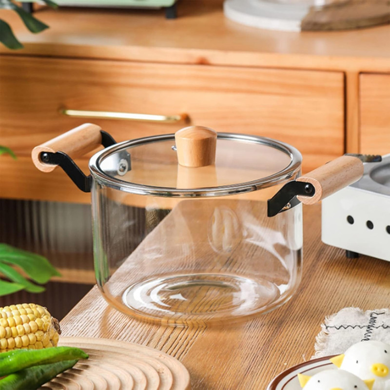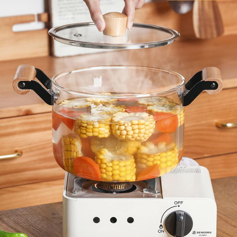 برای آشپزی سالم: سرویس ظروف شیشهای از شیشه بوروسیلیکات مرغوب و بدون سرب ساخته شده است و از سرویس پخت و پز پلاستیکی یا استیل ضد زنگ سالمتر است. عایق ضد سوختگی: دسته بدنه قابلمه از جنس چوب است و در هنگام پخت و پز در دمای بالا، دستهها بیش از حد گرم نمیشوند که این امر عایق حرارتی بهتر و خاصیت ضد سوختگی را به همراه دارد. تمیز کردن آسان: قابلمه شیشهای برخلاف ظروف فلزی و پلاستیکی لکه نمیگیرد و بو را حفظ نمیکند. پس از استفاده، پس از یک دوره کوتاه خنک شدن، محصول خود را برای مدت کوتاهی کنار بگذارید تا خنک شود، سپس قبل از تمیز کردن، آن را در آب گرم و صابون خیس کنید. قابلمه شفاف: به راحتی و بدون نیاز به برداشتن درب، روند پخت را مشاهده کنید. کافیست نگاهی به قابلمه بیندازید تا دقیقاً ببینید غذایتان در چه مرحلهای است. حتی میتوانید این کار را هنگام خرد کردن سبزیجات برای سالاد یا چیدن میز شام انجام دهید. مقاوم در برابر حرارت: مقاومت عالی در برابر سرما و گرما، قابلمه شیشهای با درب، دما را تحمل میکند، میتواند با شعله باز گرم شود، میتواند روی اجاق گاز، فریزر، مایکروویو و فر استفاده شود
