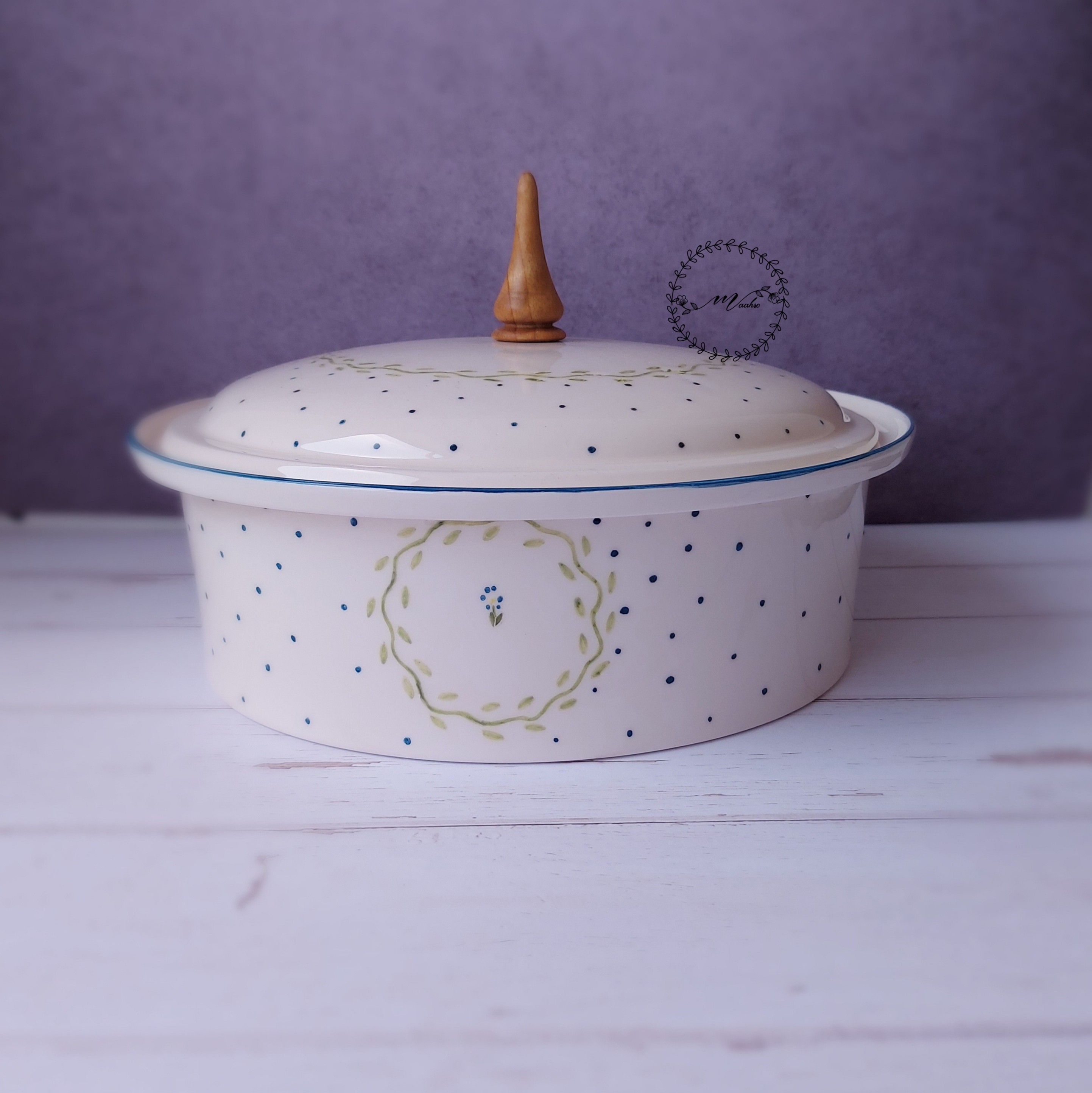 سوپ خوری سرامیکی درب دار طرح گل بنفشه 27 سانت مبلمونسرا مدل 287949