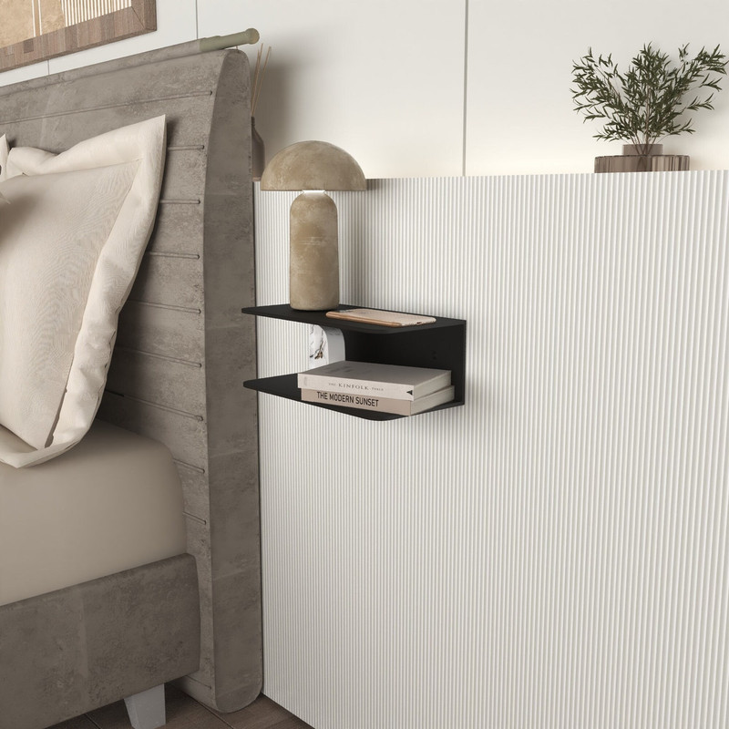 این شلف با دو طبقهی کاربردی، فضای مناسبی برای گذاشتن کتاب، عینک یا تلفن همراه کنار تخت فراهم میکند. طراحی ساده ولی مدرن آن باعث میشود با هر دکوراسیونی ست شود. مخصوص اتاق خوابهای کوچک یا خوابگاه دانشجویی که هر سانتیمتر فضا ارزش دارد.