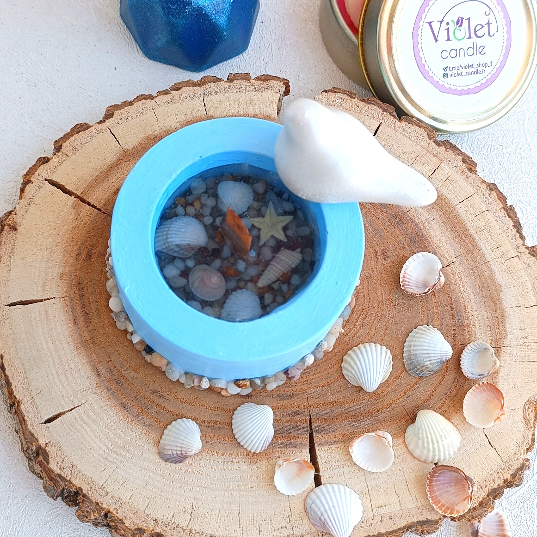 شمع حوض و کبوتر با فتیله چوبی ساخته شده از پارافین ژله ای، صدف وگوش ماهی و سنگریزه های طبیعی
