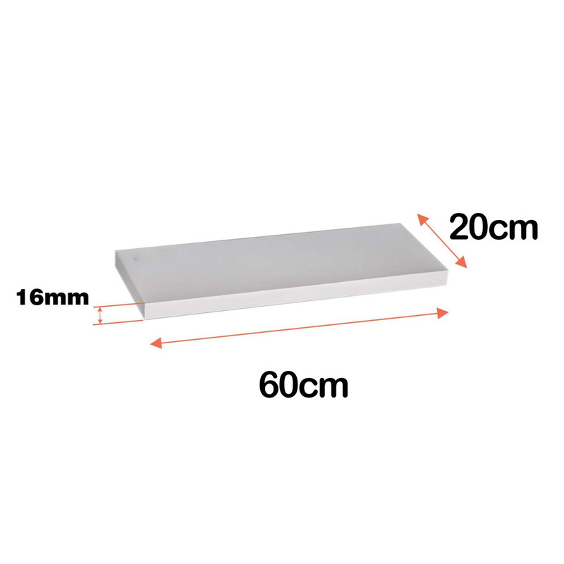 این شلف از جنس MDF با ضخامت 16 میلیمتر داری طیف وسیعی از کاربرد است. در آشپزخانه برای قرار دادن شیشه و بطری ها، در اتاق برای نگهداری گلدان و لوازم دکوری ،در دستشویی و حمام، زیر آینه یا بصورت مجزا برای قرار دادن لوازم شوینده و آرایشی و... .نصب این محصول بسیار ان با 2 پایه فلزی که به همراه شلف است انجام می پذیرد و در پوشی روی پایه قرار می گیرد که روی پیچ را بپوشاند.