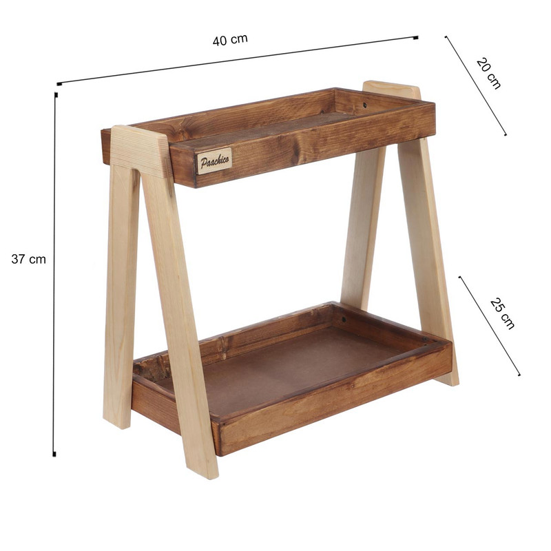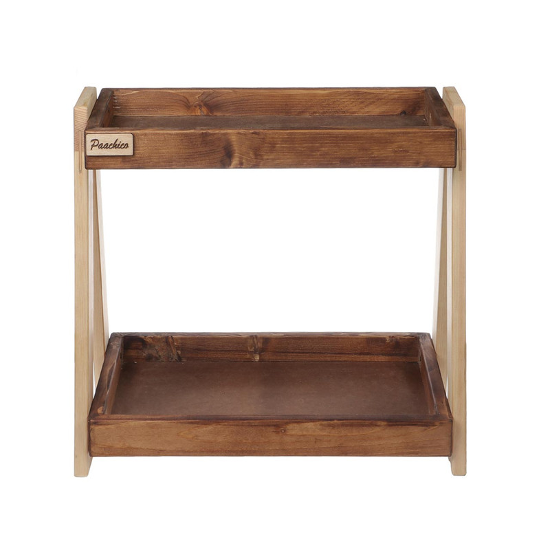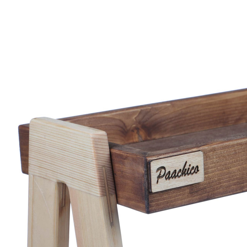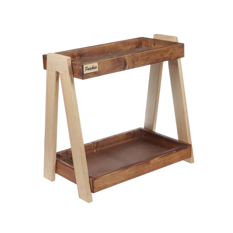 استفاده از ظروف چوبی در آشپزخانهها، از زمان گذشته تا الان بسیار رایج بوده است. زیبایی و حس طبیعی بودن این ظروف، امروزه آنها را در میان مردم محبوب کرده است. از جمله فواید استفاده از ظروف چوبی در آشپزخانهها، سادگی و کلاسیک بودن چوب است که میتواند حس زیباییشناسی افراد را برانگیخته و سرو غذا را تا حد زیادی لذتبخش کند. چوب یک ماده طبیعی بوده و این بدان معناست که قابل تجزیه و بازیافت است. بنابراین بعد از چند سال، به خاک باز گشته و به آن مواد مغذی اضافه میکند. این ویژگی سبب میشود تا از یب زدن به محیط زیست جلوگیری شود. چوب، به شرط جایگزین ساختن درختانی که قطع میشوند، مادهای پایدار خواهد بود. علاوه بر این، استفاده از ظروف چوبی باعث تقویت ارتباط ما با طبیعت در روزمره میشود. این امر به ان حس خوبی داده و سبب افزایش احساس بهزیستی وی میشود. این محصول با ابعاد 40 سانتیمتر طول و 20 سانتیمتر عرض طبقه بالا و 25 سانتیمتر عرض طبقه پایین و 37 سانتیمتر ارتفاع، توسط استادکاران پاچیکو از چوب مرغوب روسی ساخته شده و با روغن های گیاهی پوشش داده شده است.