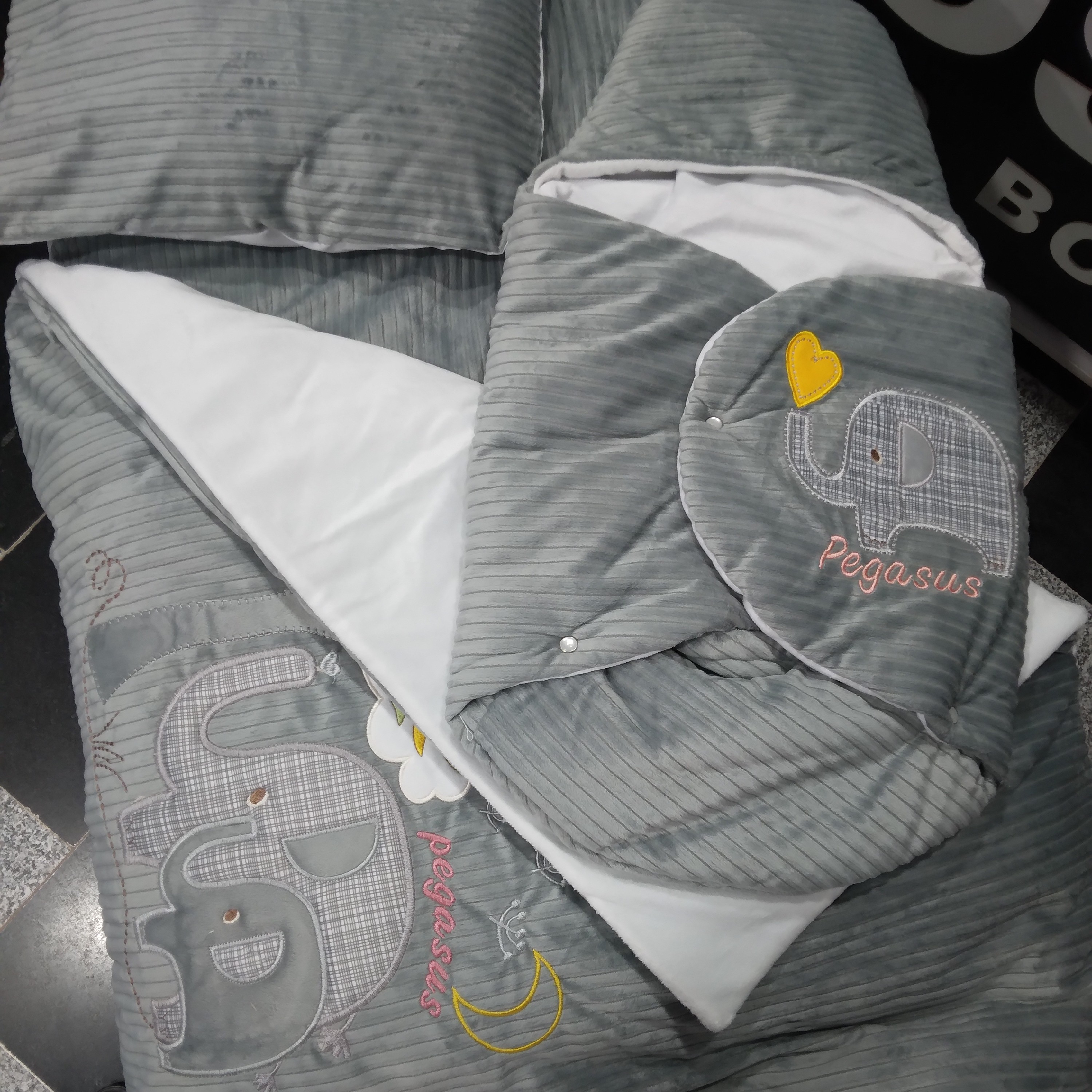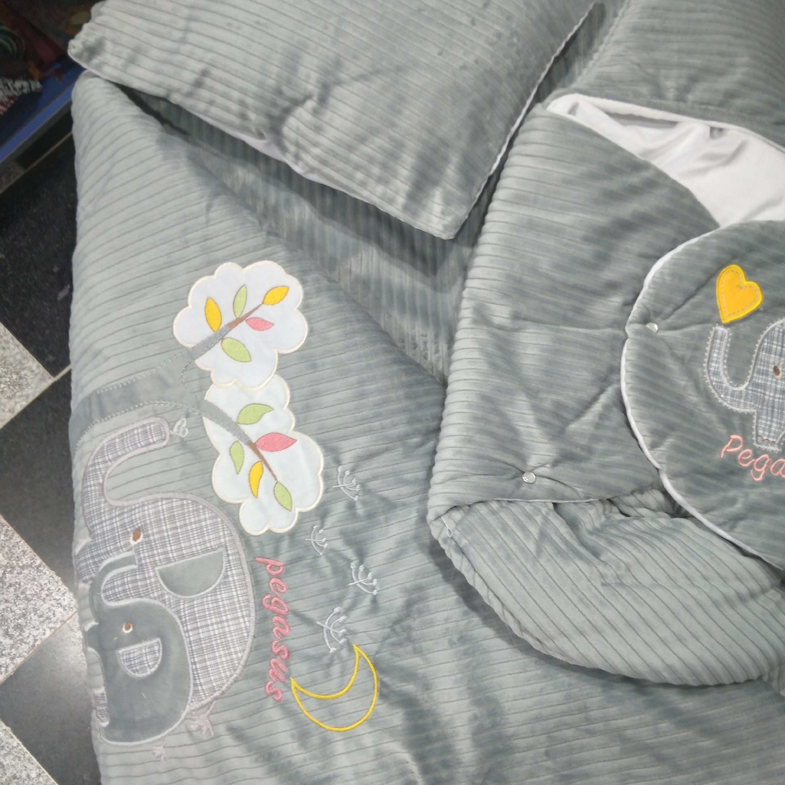 سرویس خواب وروتختی ۴ تیکه نوزاد جنس مخمل با طرح ورنگهای جذاب ومتنوع شامل یک عد تشک یک عدد بالش .یک عدد قنداق فرنگی .ویک عدد لحاف