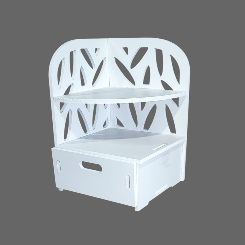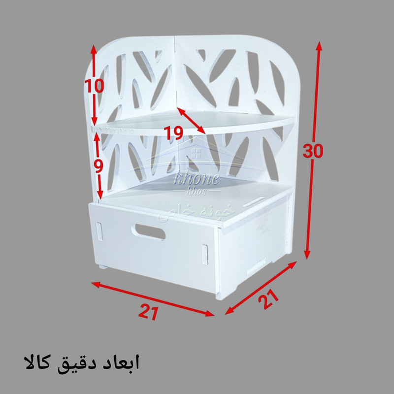 شلف کنجی کشودار مدل برگی محصول ی خونه خاص بوده که از ورق درجه یک پی وی سی تهیه شده است که کاملا قابل شستشو بوده و هرگونه لک و کثیفی براحتی از روی محصول پاک می شود. این محصول نظم دهنده انواع لوازم آرایش ، زیورآلات و بجات ، جا ادویه، لوازم التحریر و سایر لوازم است و دارای یک کشو در زیر کار برای قرار دادن خرده ریزها می باشد. محصول اصلی با ابعاد اصلی و کیفیت عالی فقط با برند و بسته بندی خونه خاص ال می شود.