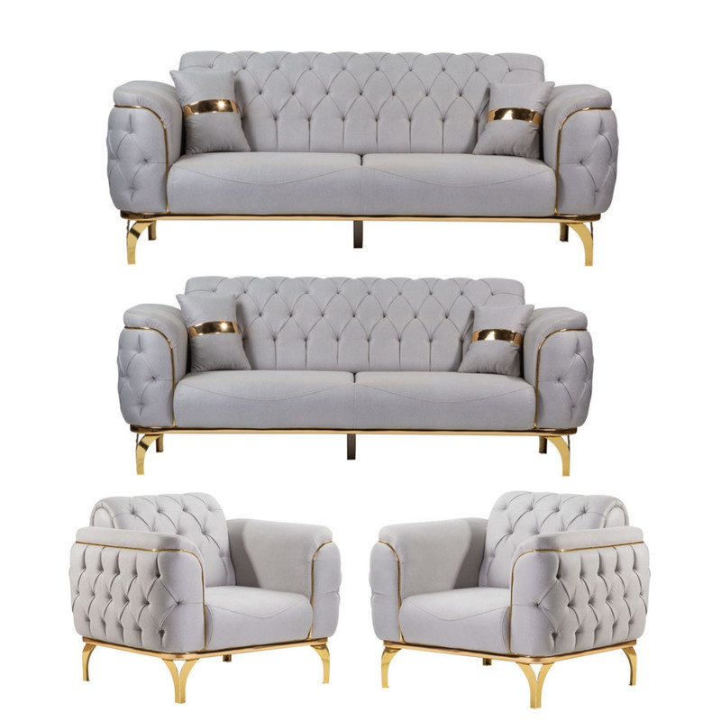 توجه!!!(قبل از ثبت سفارش لازم است بدانید که رنگ کاناپه های سه نفره و مبل تکنفره را میتوانید شما عزیزان با انتخاب رنگ و ثبت سفارش انتخاب کرده تا باهم ست شود.) مدل یک مبل راحتی 8 نفره . این کالا شامل دو عدد کاناپه 3 نفره و دوعدد مبل 1 نفره میباشد.فلز استفاده شده از جنس آهن با کیفیت در پایه ها و دیزاین ظاهری مبل، کلاف چوب روس نراد خشک شده، اسفنج های 35 کیلویی ویژه برای نشیمن، اسفنج 30 کیلویی برای تکیه گاه و اسفنج 30 کیلویی برای دسته های مبلمان، باعث شده تا مدل عمر طولانی و راحتی فوق العاده ای را به شما هدیه دهد.دست کشیدن در کنار دسته های کاناپه ها احساس بسیار خوبی به شما می بخشد. پایه های مبل از جنس آهن برای دیزاین به کار برده شده، زیبایی خیره کننده و دو چندانی به مبل راحتی بخشیده است. هر دو کاناپه 3 نفره ، دارای فضای بسیار مناسب و کافی برای استراحت میباشد.دوخت بسیار با کیفیت و زیبا در کنار مغزی دوزی هایی که با ظرافت خاصی در همه جای این مدل به چشم میخورد، حاصل طراحی مدرن و خلاقانه ی طراحان مجموعه میباشد.یکی از مهمترین نکات در طراحی و تولید مدل ، طبی بودن تکیه گاه و نشیمن آن است به طوری که برای کسانی که مشکلات ستون فقرات دارند بسیار راحت و مناسب است. مبل یک محصول شیک و کلاسیک با طراحی زیبا و جذاب است که به آسانی میتواند جزو مبلمان مورد علاقه شما باشد. این مبل 8 نفره است و شامل دو کاناپه، دو تا مبل تک نفرهاست.پایههای این مبل کاملاً از جنس آهن ضد زنگ و رطوبت ساخته شدهاند و کلاف داخلی آن نیز از چوب روس نراد ساخته شده است. دو پایه در وسط کاناپه این محصول مجهز شده است تا ثبات بیشتری برای کاناپه ایجاد کنند. در کل، مبل یک محصول بسیار راحت و شیک است که میتواند تزئینی عالی برای منازل و اتاقهای مختلف باشد این ست مبلمان یک سرویس کامل بوده و برای خرید جهیزیه و زیبایی بیشتر دکوراسیون منزل شما پیشنهاد می شود