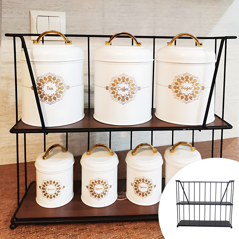این محصول شلف 2 طبقه رومیزی به رنگ مشکی و سایز کوچک می باشد. جنس بدنه فلز با رگ الکترواستاتیک کوره و جنس کف طبقه ها چوب ام دی اف 6 میل گردویی می باشد. این محصول بسیار زیبا مناسب برای آشپزخانه و اتاق خواب و یا پذیرایی می باشد.