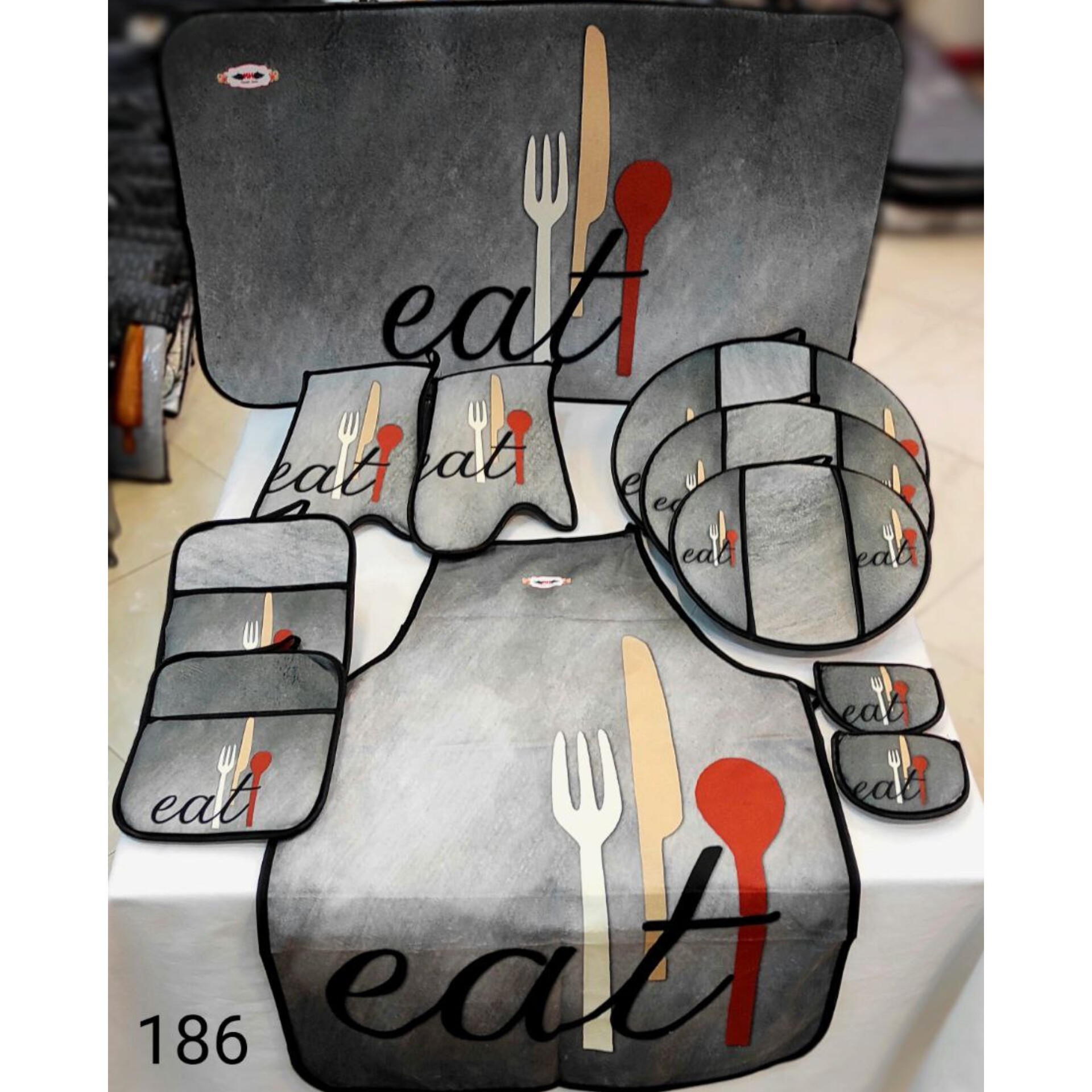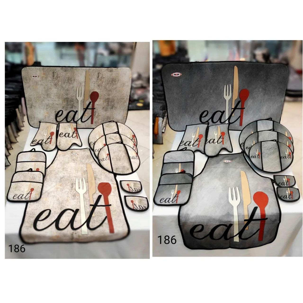 برند: کارما هوم مخمل نسوز طرح ترک،کیفیت عالی ساخت: ایران شامل: 3 عدد دمکنی 1 عدد نم گیر ظرف 1 عدد پیش بند 2 عدد دستکش فر 2 عدد دستگیره قلب 2 عدد دستگیره کوچک قابلمه