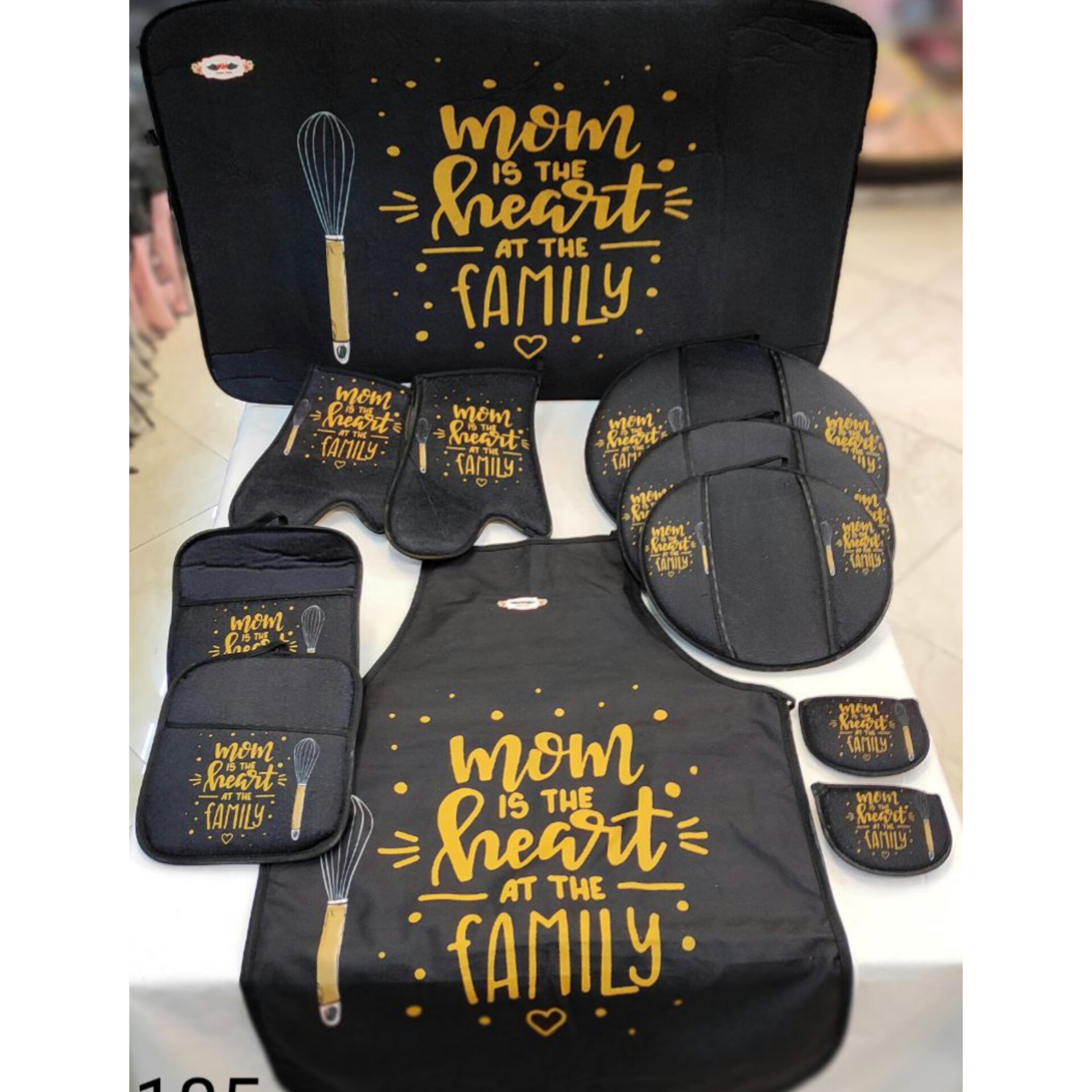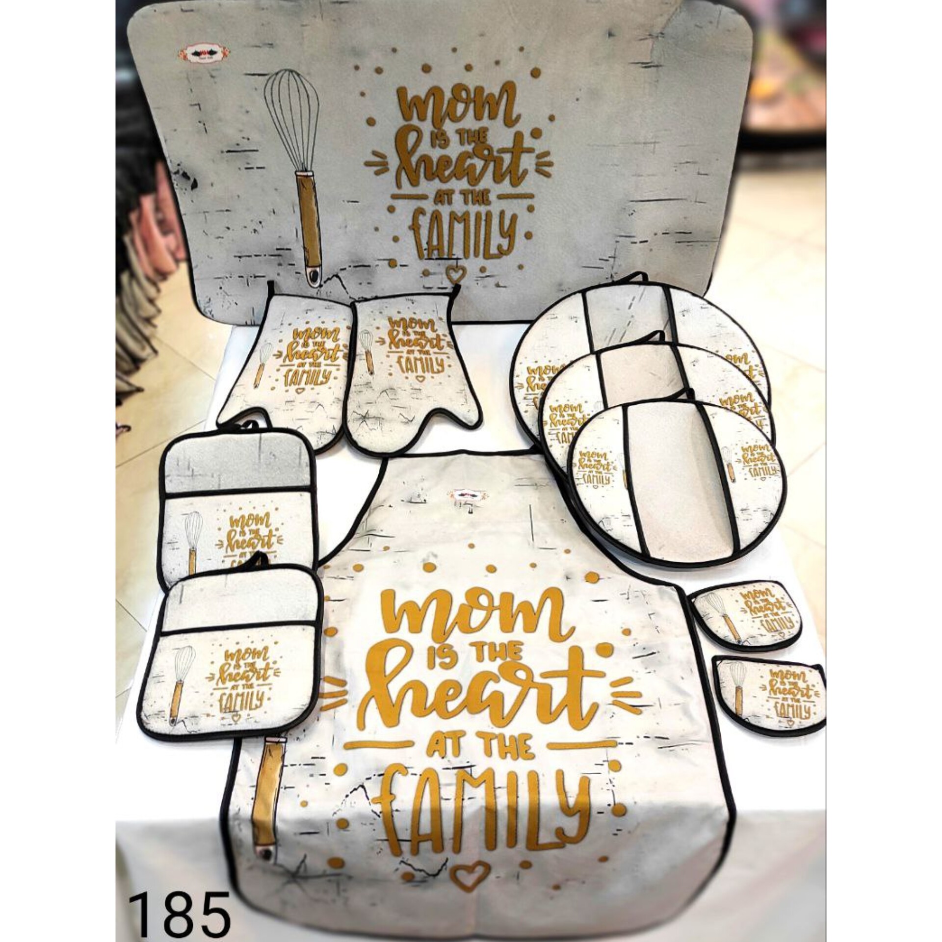 برند: کارما هوم مخمل نسوز طرح ترک،کیفیت عالی ساخت: ایران شامل: 3 عدد دم کنی 1 عدد نم گیر ظرف 1 عدد پیش بند 2 عدد دستکش فر 2 عدد دستگیره مربع 2 عدد دستگیره کوچک قابلمه