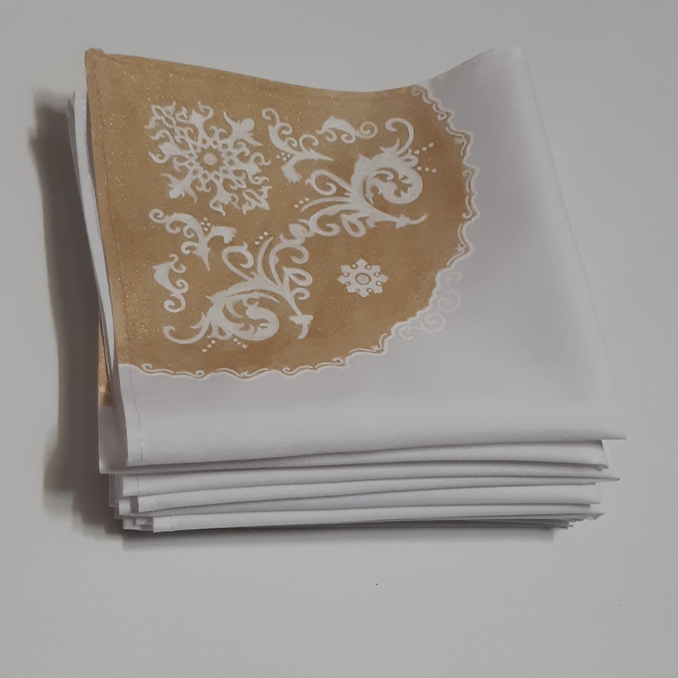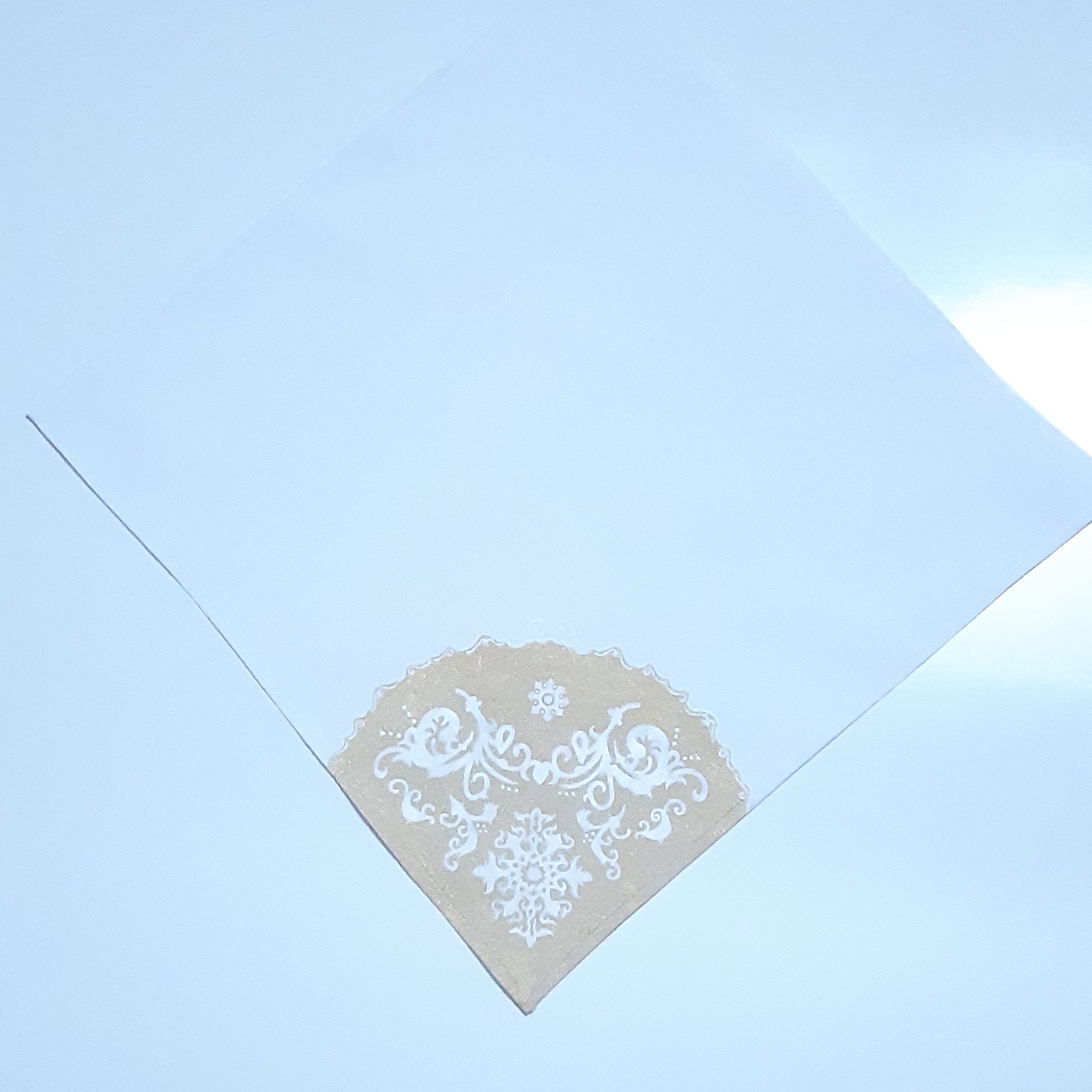 دستمال سفره پارچه ای نقاشی شده طبق طرح سرویس چینی به سفارش مشتری جنس پارچه تترون اعلا رنگ ثابت و تضمینی عکس اول سفارش مشتری هست و عکس دوم و آخر عکس ظرف هست که توسط مشتری ارسال شده. مراحل تولید: برش دقیق پارچه آماده سازی طرح انتقال طرح روی پارچه آماده سازی رنگ رنگ آمیزی دوخت اتوی پارچه جهت تثبیت رنگ