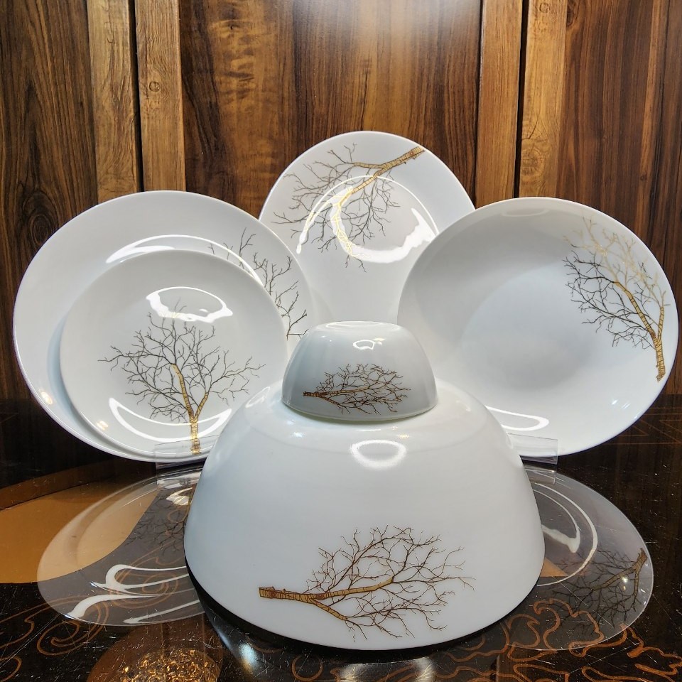 آرکوپال درخت طلایی 🔹️روی قالب گرد کلاسیک مقصود 🔹️با برند انحصاری 🔹️قابل استفاده در ماشین ظرفشویی 🔹️ داخل ماکرویو نمیتونید استفاده کنید ❌️ 🔹️۲۶ پارچه شش نفره 🔹️لب های این طرح ساده سفید بدون طلا می باشد ❇️اجزای داخل سرویس 🔸️پلوخوری شش عدد 🔸️خورشت خوری شش عدد 🔸️پیش دستی شش عدد 🔸️کاسه ماست شش عدد 🔸️دیس بیضی برنج یک عدد 🔸️کاسه سالاد یک عدد