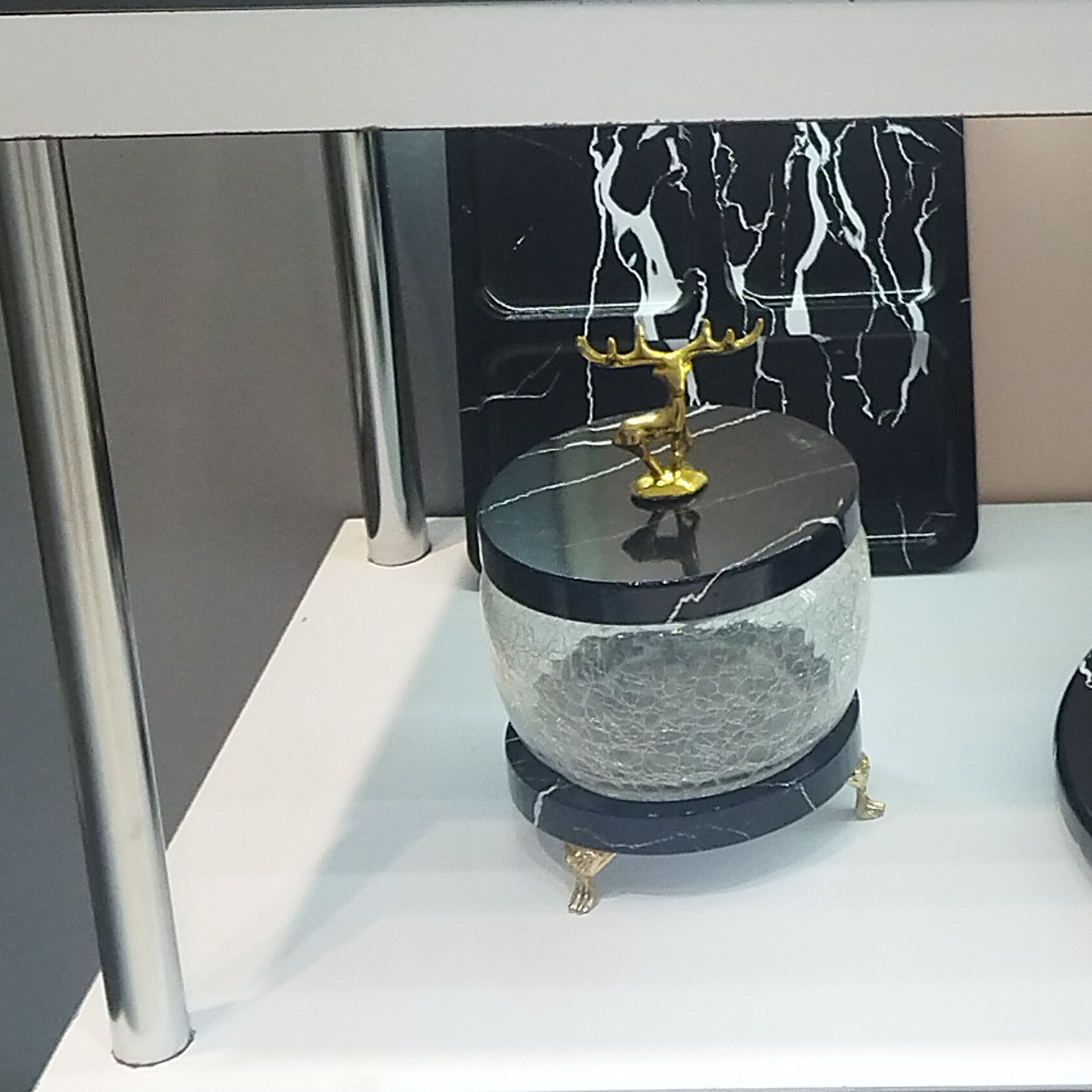 شکلات خوری شیشه آبگز طرح ماربل رنگ مشکی براق مبلمونسرا مدل 296795