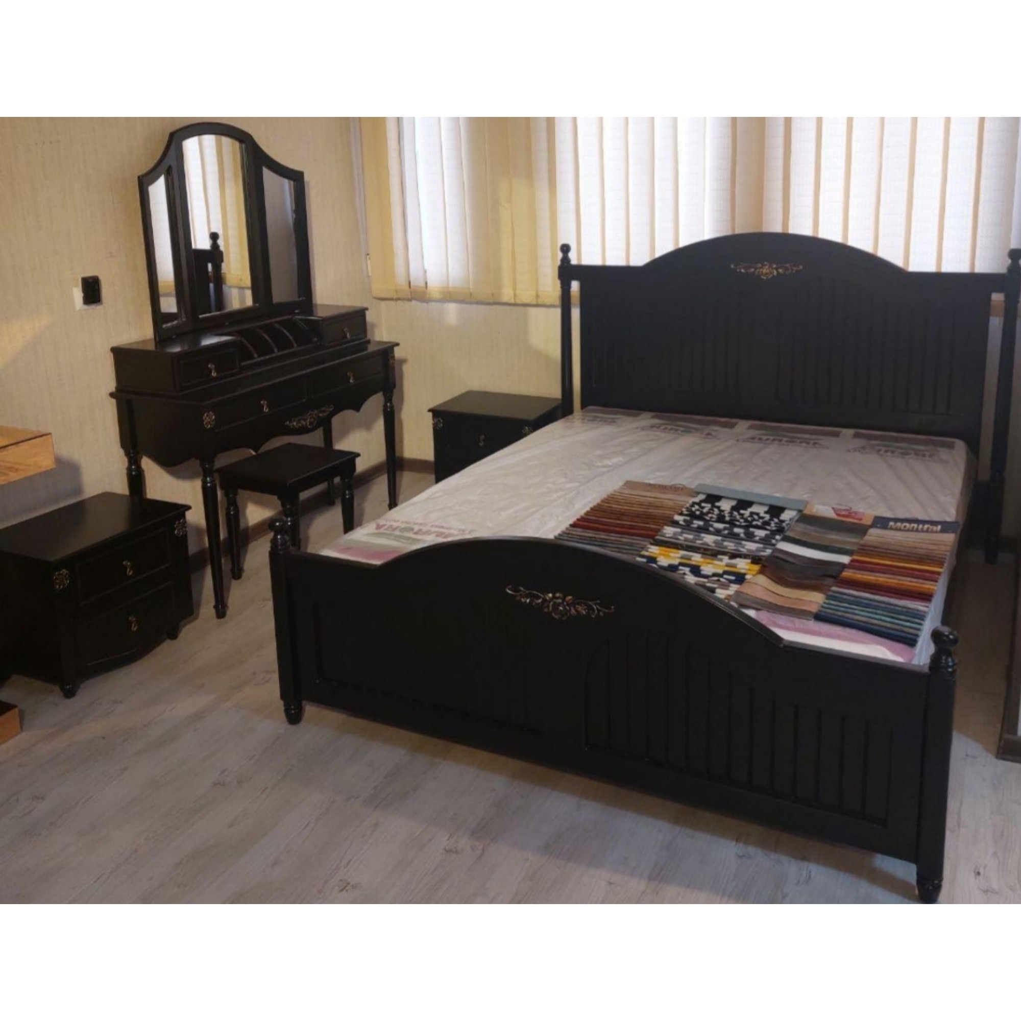سرویس خواب کامل دونفره مدل پرهام روکشی و رنگهای خاص ازجمله صورتی و... مبلمونسرا مدل 226450