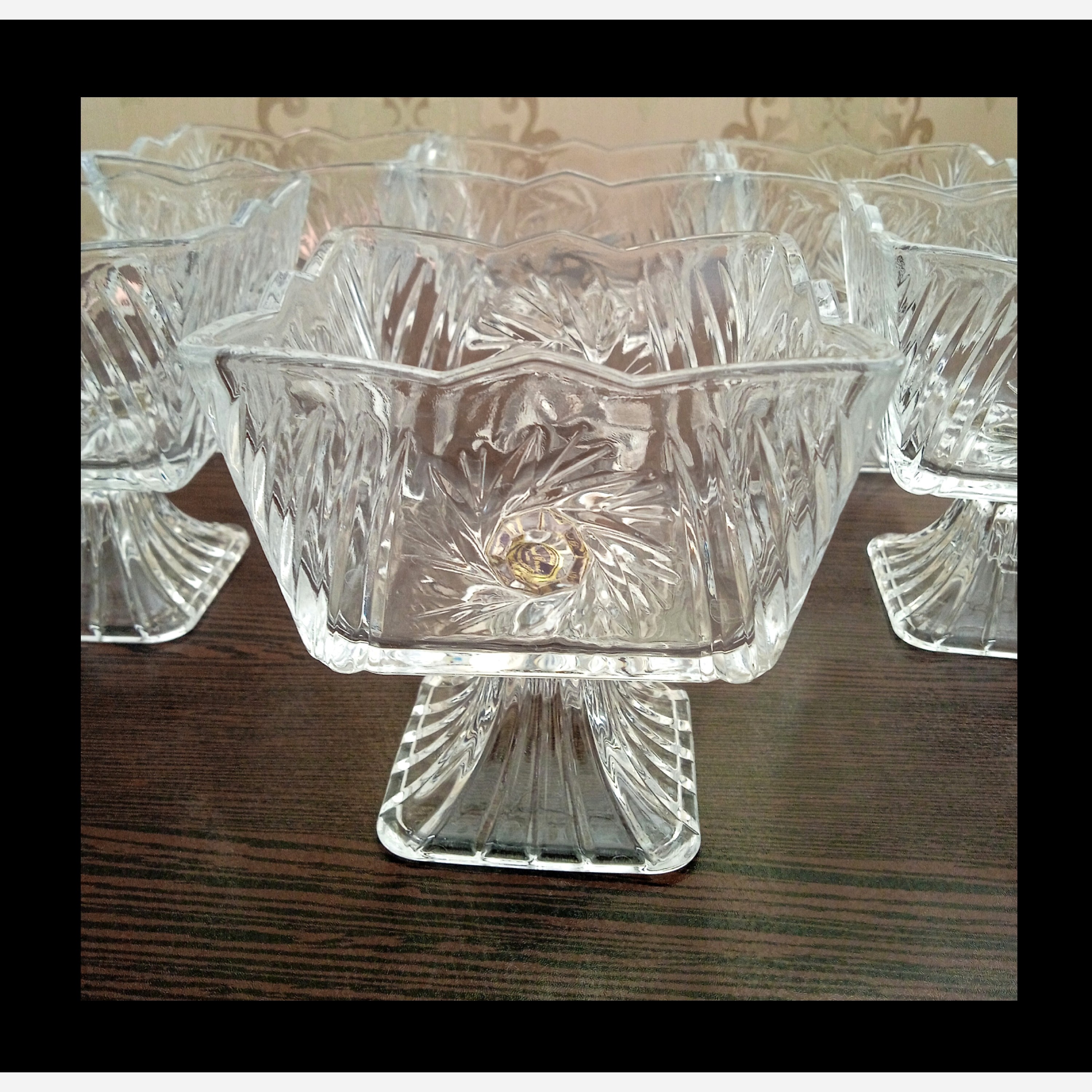 بستنی خوری پایه دار تراش خورشیدی سرانو چین مناسب برای سرو دسر و بستنی به عنوان آجیل خوری هم استفاده میشه ارتفاع ۱۰ سانت قطر دهنه ۹ سانت