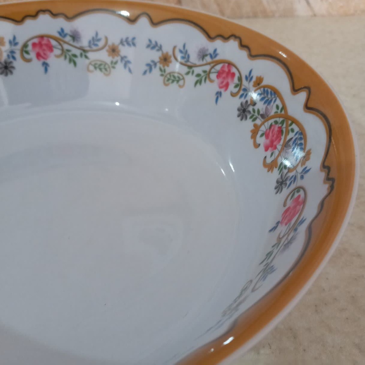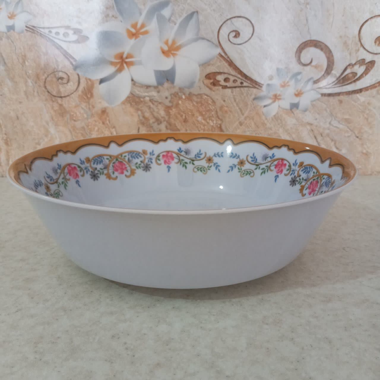کاسه سالادملامین مارک یزد ملامین اصلی دارای استاندارد مواد درجه یک تعداد یک عددی سایز قطر 20 سانتی متر لطفا به سایز بشقاب دقت بفرمایید جنس بسیار عالی مارک اصلی تولید کارخانه یزد