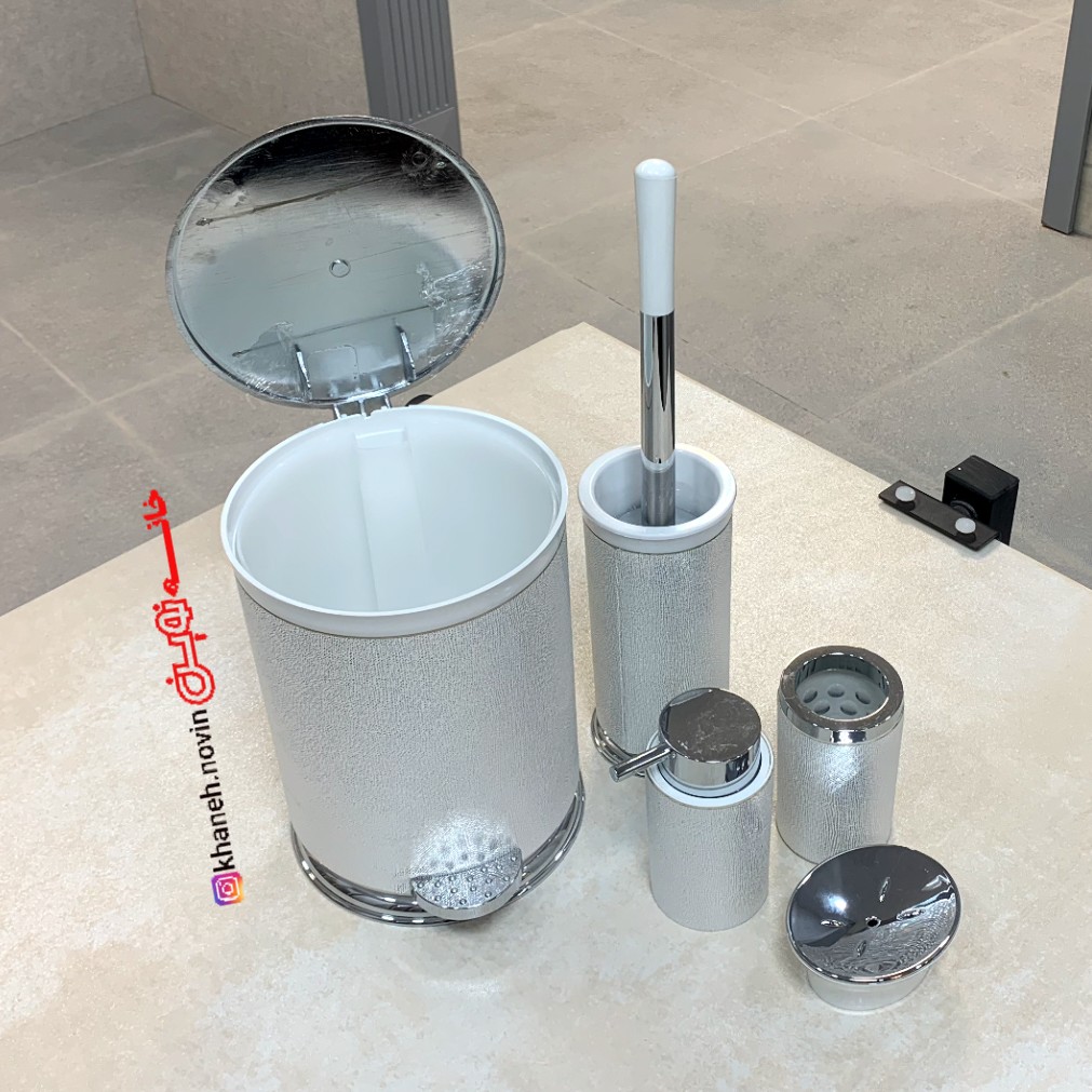 ست سرویس بهداشتی 5 پارچه بتیس با روکش چرم پوست ماری رنگ سفید کروم مبلمونسرا مدل 265667