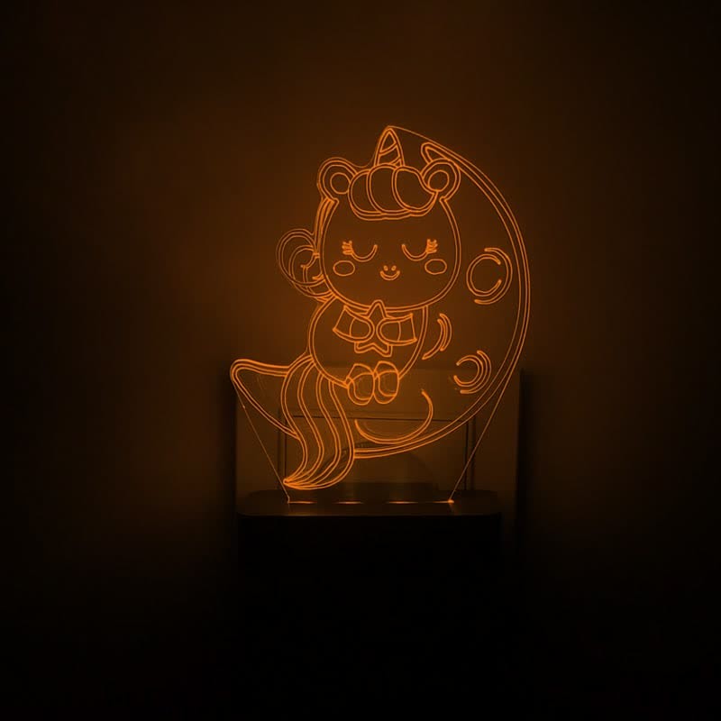 چراغ خواب فانتزی طرح ماه و اسب تک شاخ مدل دیواری مبلمونسرا مدل 232592