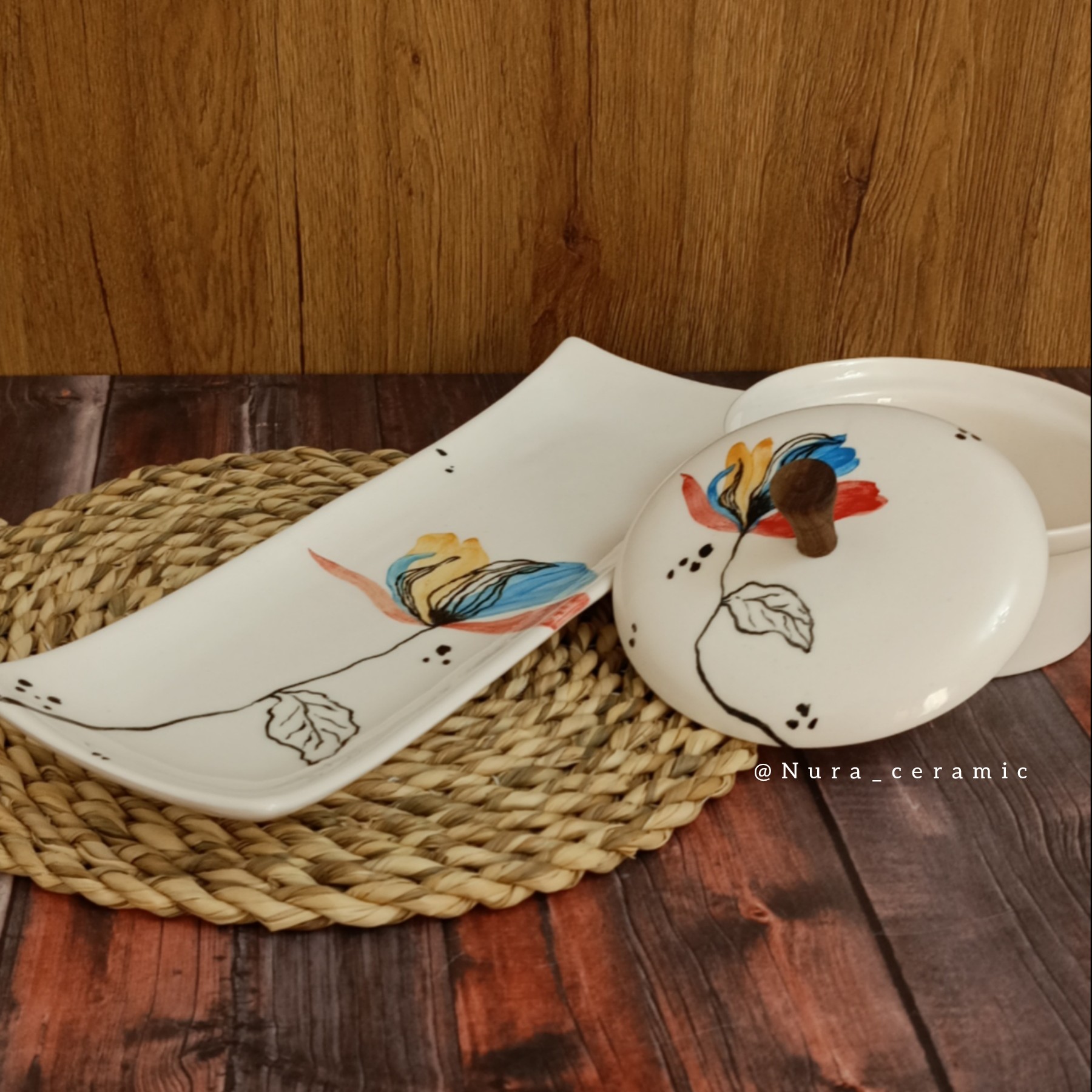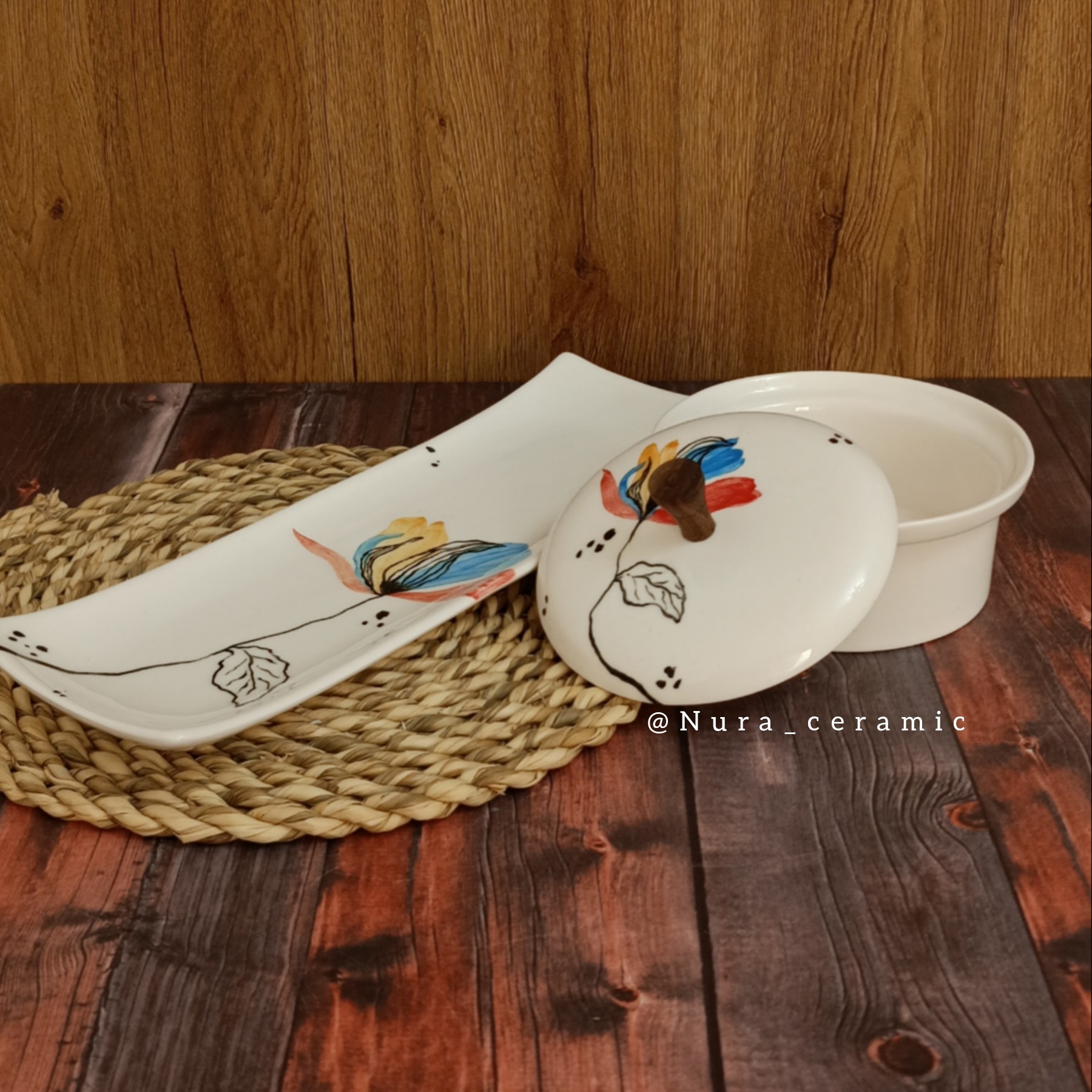 شکلات خوری و رولت خوری دست ساز سرامیکی کاملاً مصرفی قابل شستشو با انواع شوینده نقاشی زیرلعابی پخت شده با دمای بالا ۱۰۸۰