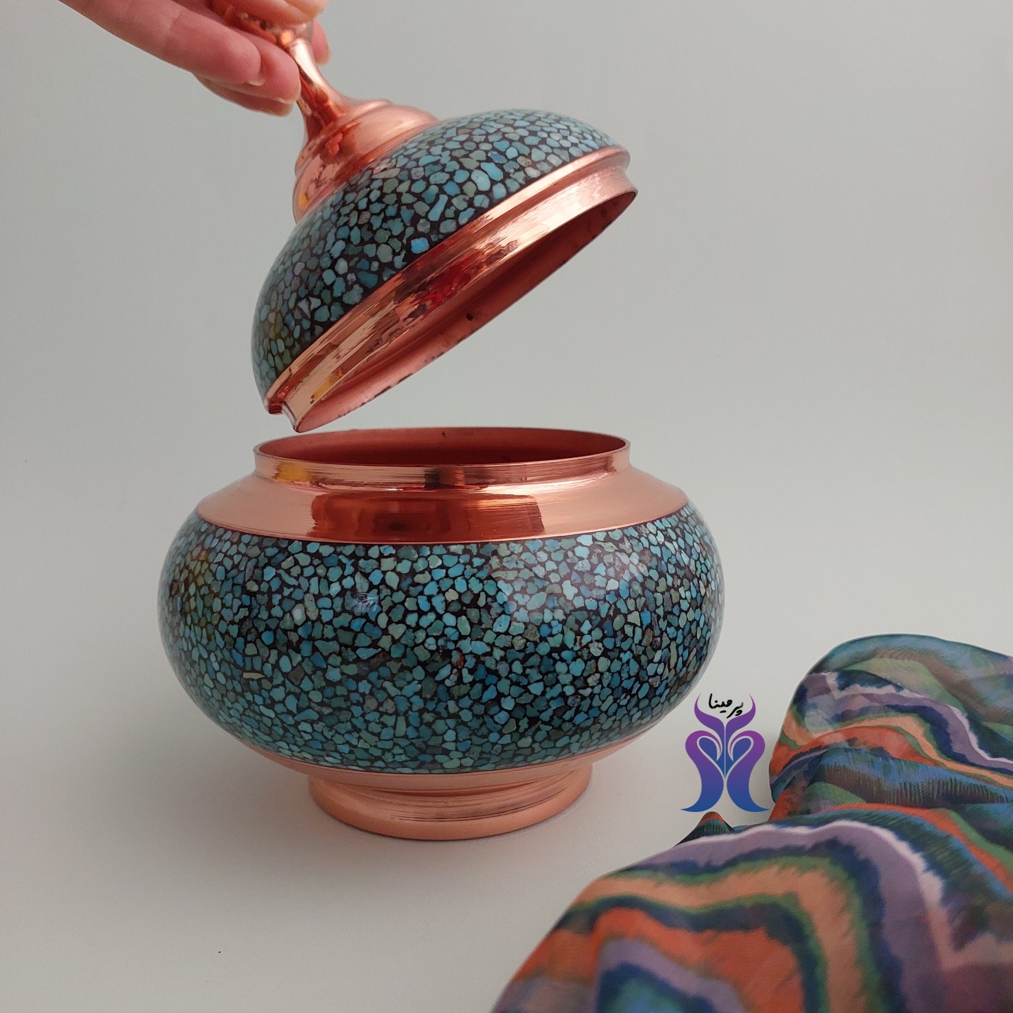 ارتفاع۲۲ قطر دهانه۱۱ با روکش پلی استر سنگ فیروزه نیشابور مناسب برای پذیرایی