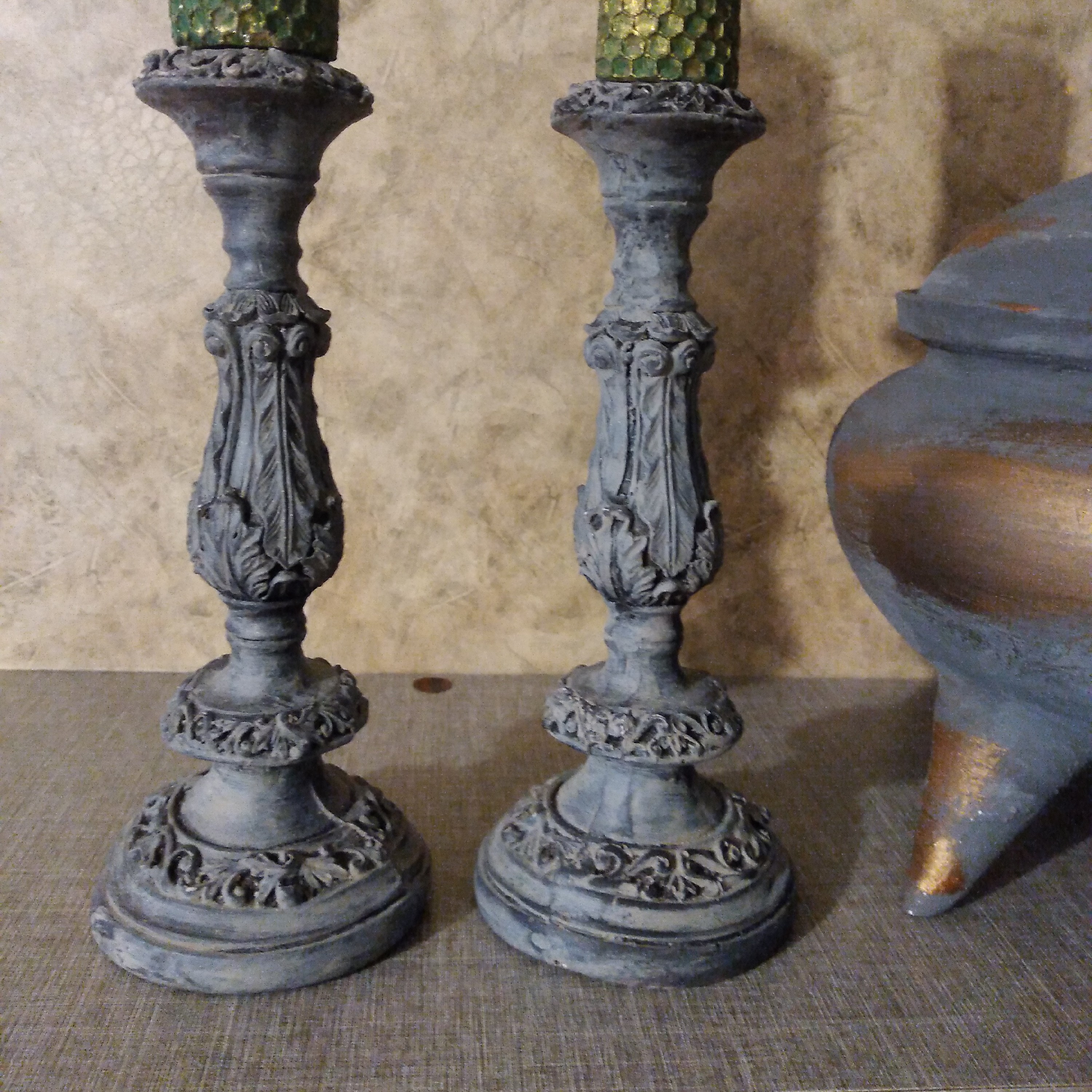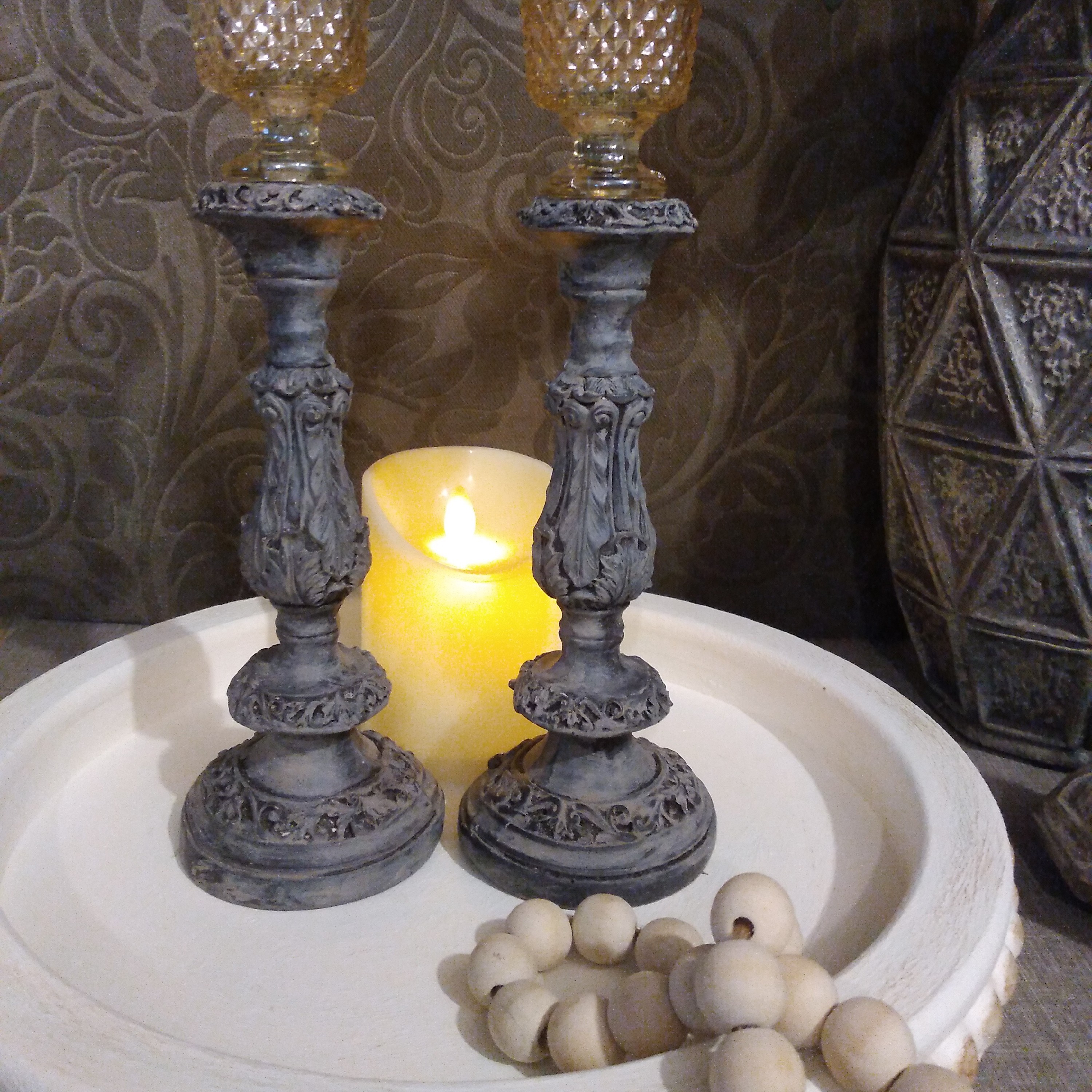 ست دو تایی جاشمعی پلی استر پتینه شده ارتفاع بیست سانت
