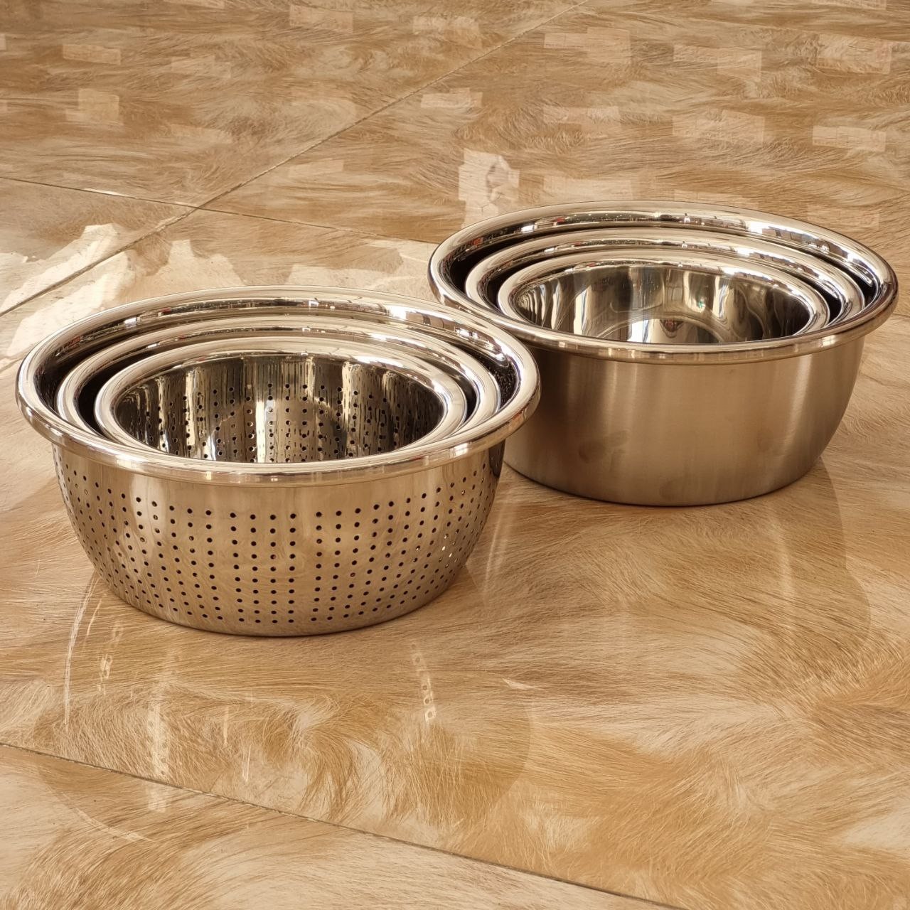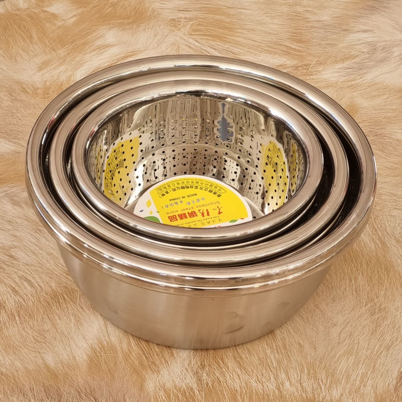 آبکش و لگن استیل محصول وارداتی بدون خط و خش و ضد زنگ بسیار سبک و کیفیت بالا هر کدام به صورت جداگانه هم بفروش میرسد. 🔹آبکش قیمت دونه ای : 20cm=150t 24cm=200t 28cm=280t 🔹لگن قیمت دونه ای : 20cm=150t 24cm=200t 28cm=280t قیمت ست ششتایی : 1.260.000t