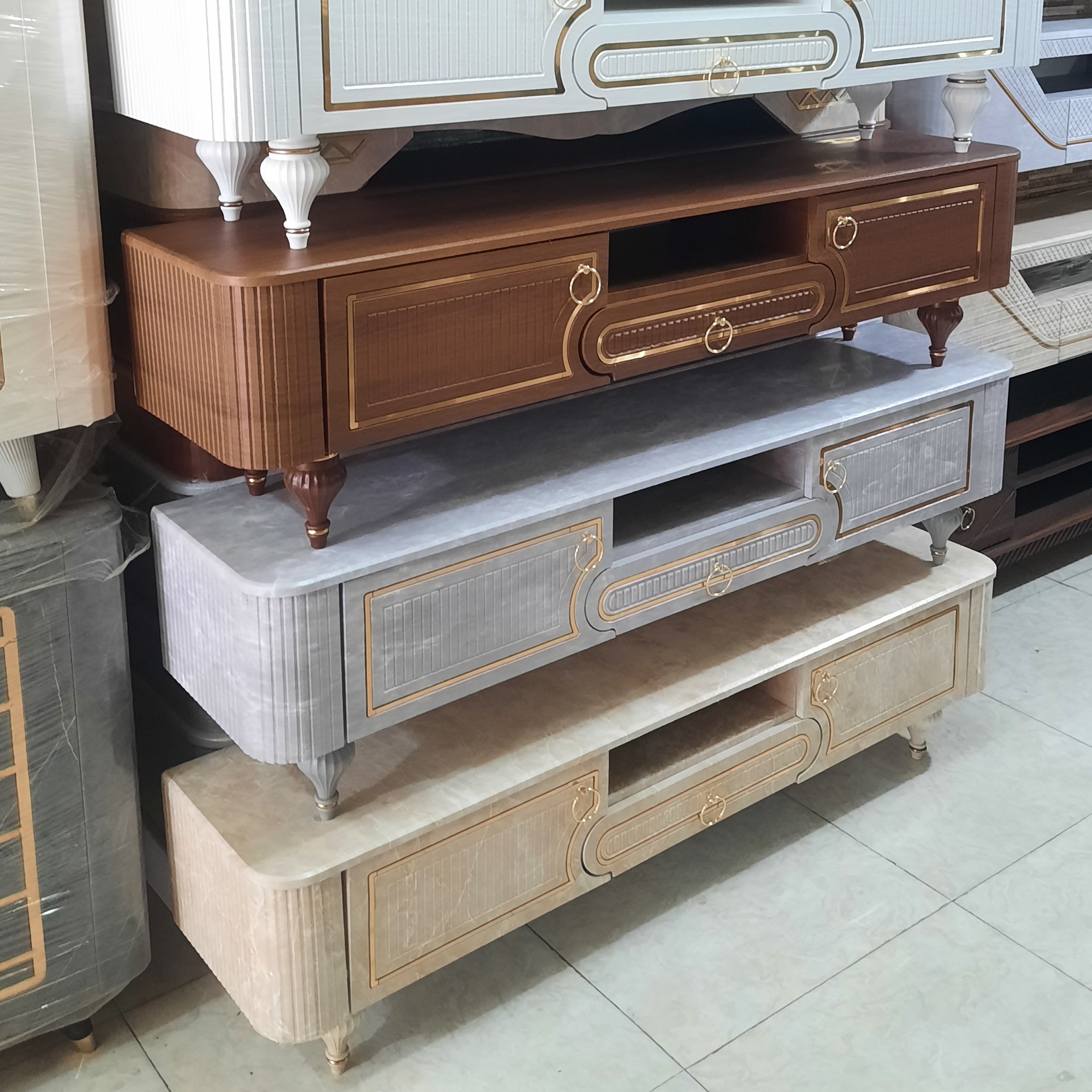 مدل ۱۰۲۶ ابعاد 160x35x45 مناسب برای ۴۲ تا ۶۰ اینچ تمام ام دی اف تمام وکیوم پایه ABS فشرده دو درب یک کشو وسط و بالای کشو طبقه دارد رنگ بندی سفید،قهوه ای روشن، قهوه ای تیره، ابر و باد ، کرم مرمر آماده همکاری با نمایشگاه های عزیز ارسال تهران به صورت رایگان ارسال به سراسر ایران به صورت از طریق باربری