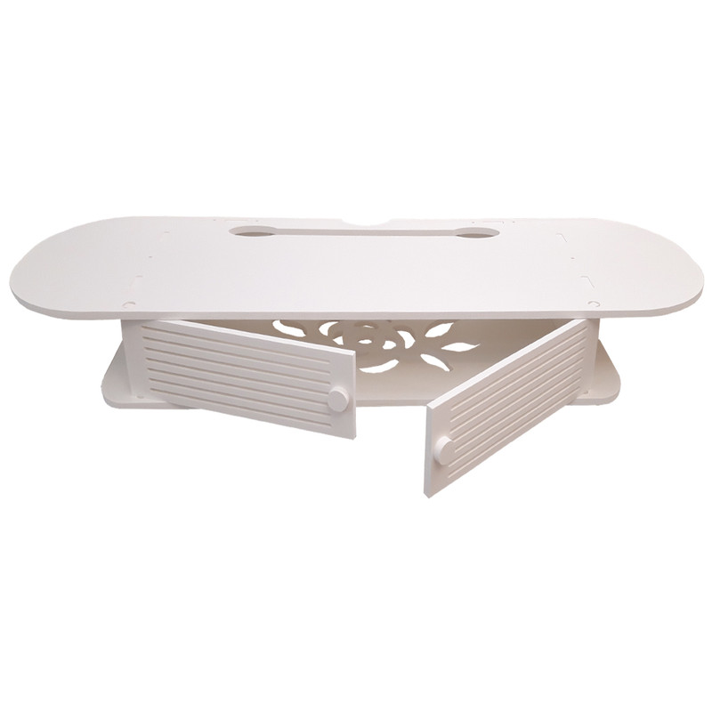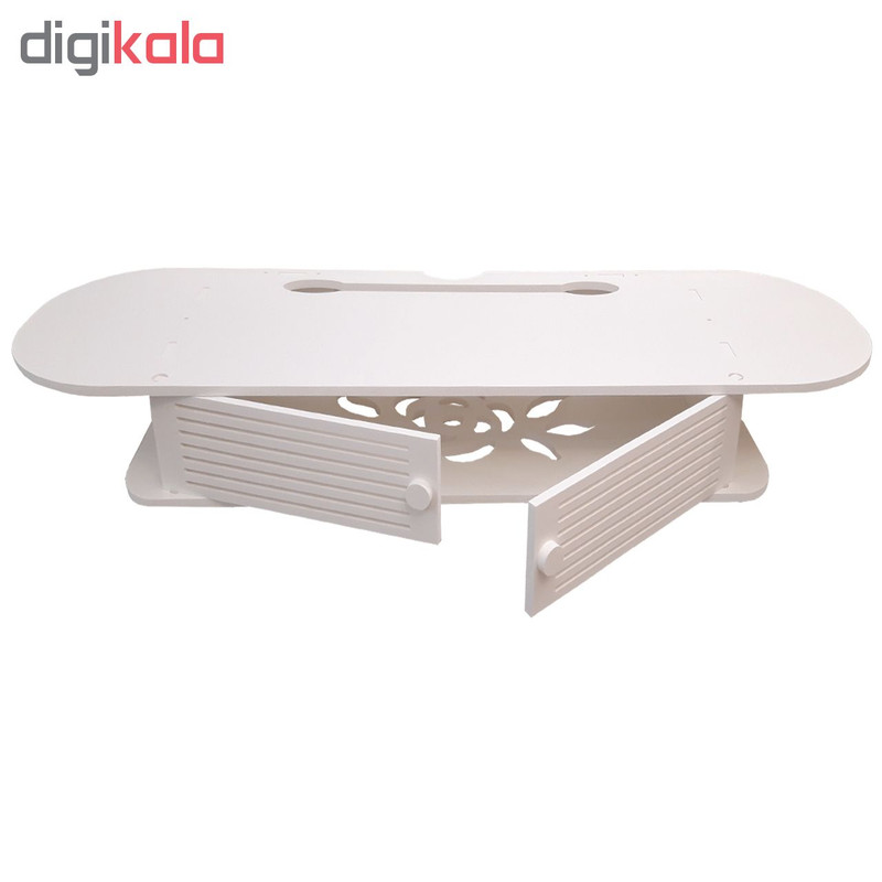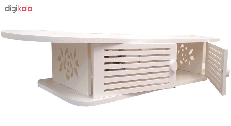 طبقه دیواری مدل درب دار محصول ی خونه خاص بوده که از ورق درجه یک پی وی سی تهیه شده است. این محصول مناسب گیرنده دیجیتال، ستاب باکس، دی وی دی، کنسول بازی، مودم و ... ساخته شده است و طراحی آن به شکل درب دار است و در صورت بسته بودن درب نیز دستگاههای داخل با ریموت کنترل کار می کنند. نصب و مونتاژ درب های آن نیز اختیاری می باشد و در صورت عدم تمایل درب ها باز شده و بدون درب استفاده می شود. حسن این طبقه با محصولات مشابه در بازار اندازه بزرگ محفظه داخلی است که طول آن 50 سانتی متر بوده و هر نوع دستگاه درون آن جای می گیرد. این محصول کاملا قابل شستشو و ضد آب است و بدون نگرانی از لک و کثیفی با آب و هر مایع شوینده ای تمیز شده و مانند روز اول می شود این طبقه جهت نصب به دیوار پشت دار بوده و بصورت مخفی است.