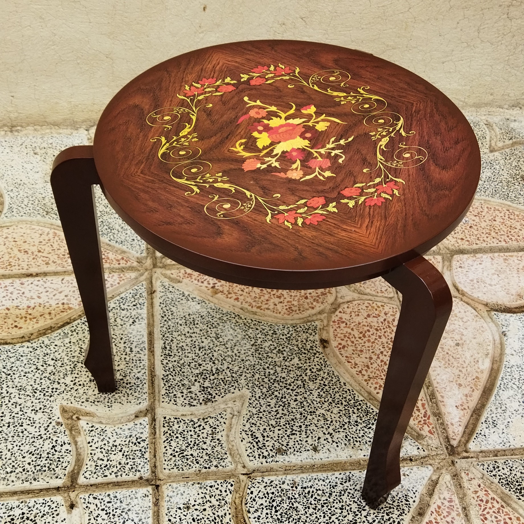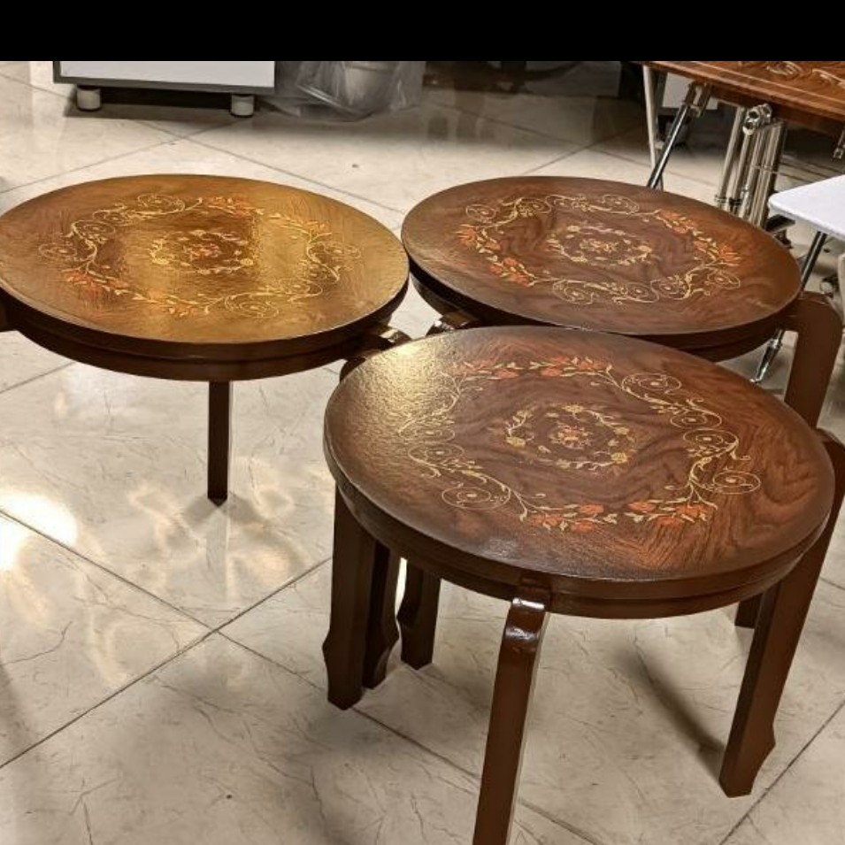 میز عسلی گرد مدل کم جا سه عددی قهوه ای معرق مبلمونسرا مدل 223041