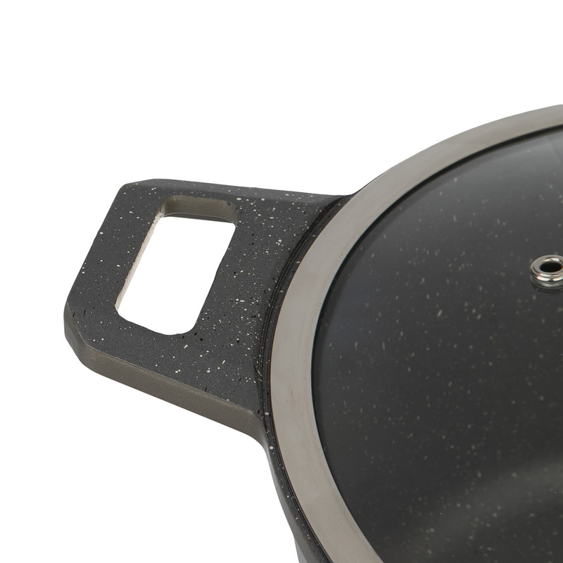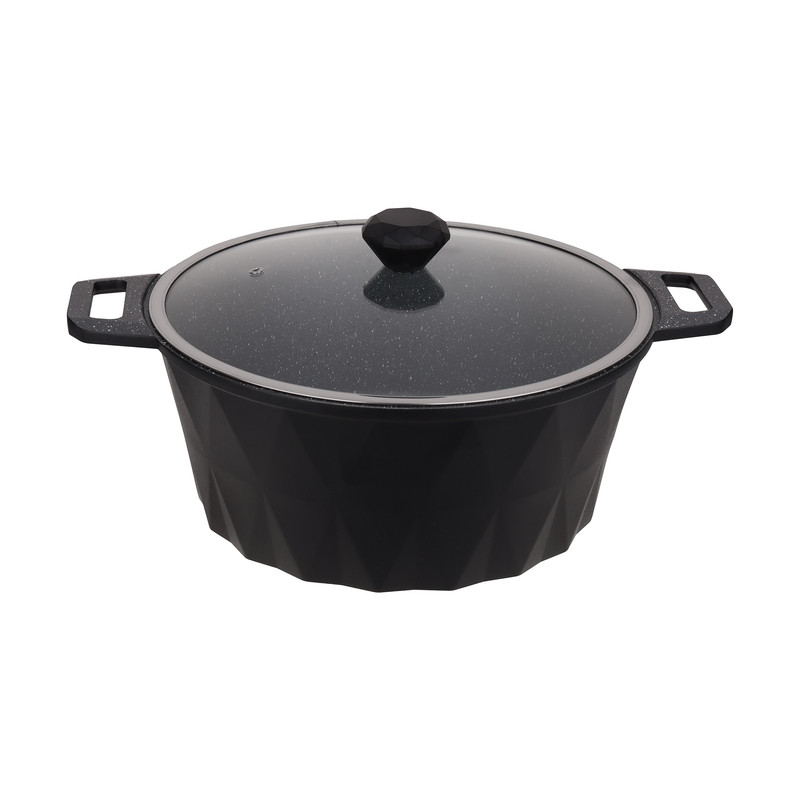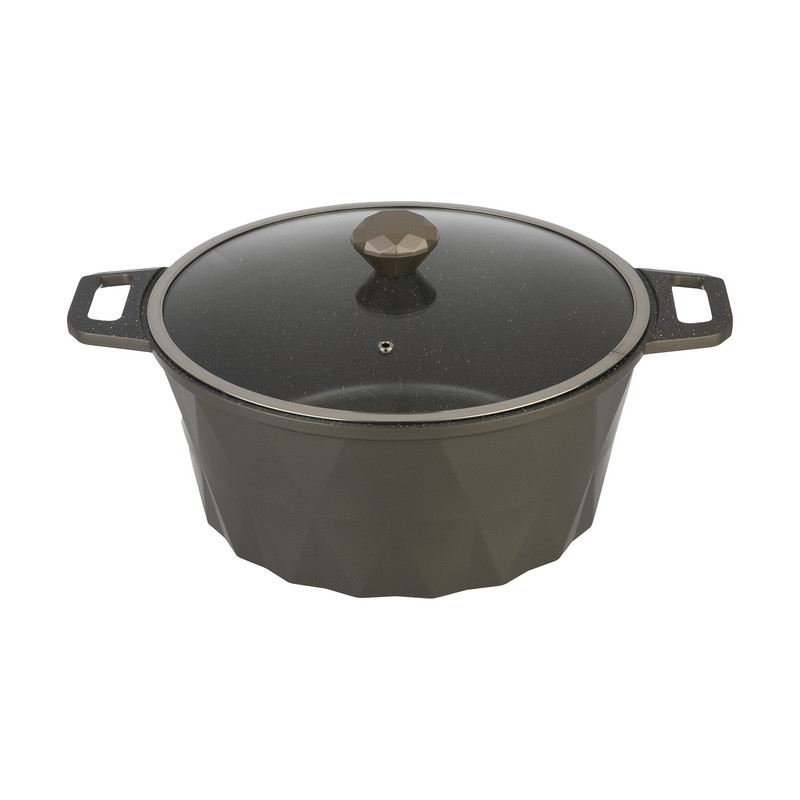 قابلمه سایز 32 مدل دایمند تکنو، بزرگترین عضو خانواده دایمند ( به لحاظ سایز ) از برند تکنو بوده و مناسب برای دم کردن 5 الی 6 پیمانه برنج ماست. قابلمه سایز 32 تکنو مدل دایمند با تکنولوژی دایکاست تولید شده که در بین عموم به چدن معروف شده است و همچنین نچسب استفاده شده در این محصول از گرانیت سبز که دوستدار محیط زیست و بدون مواد مضر و شیمیایی است، تولید شده که امکان پخت غذایی سالم و بیضرر را فراهم میکند. درپوشهای این محصول، شیشهای و دارای رینگ استیل هستند که میتوانید در حین پخت غذا محتویات ظرف را ببینید و اصطلاحا به غذا سر بزنید. طراحی قپه های درپوشها متناسب با رنگ بیرونی ظرف بوده و همچنین به لحاظ طراحی شبیه با بدنه ظرف می باشد و از این نظر زیبایی دو چندانی را به محصول داده است. درپوش های این ظروف دارای سوپاپ مخصوص خروج هوا هستند که کمک میکند بخار اضافی به راحتی از ظرف خارج شود. یکسان بودن جنس دسته و بدنه ظروف مدل دایمند قابلیت استفاده در فر و یا آون را تا دمای 200 درجه سانتیگراد به شما میدهد. طراحی زیبا و بی بدیل بدنه ظروف طرح دایمند ، برگرفته از تکه های الماس بوده تا به دکوراسیون آشپرخانهیتان جلوهی زیباتری بدهید.