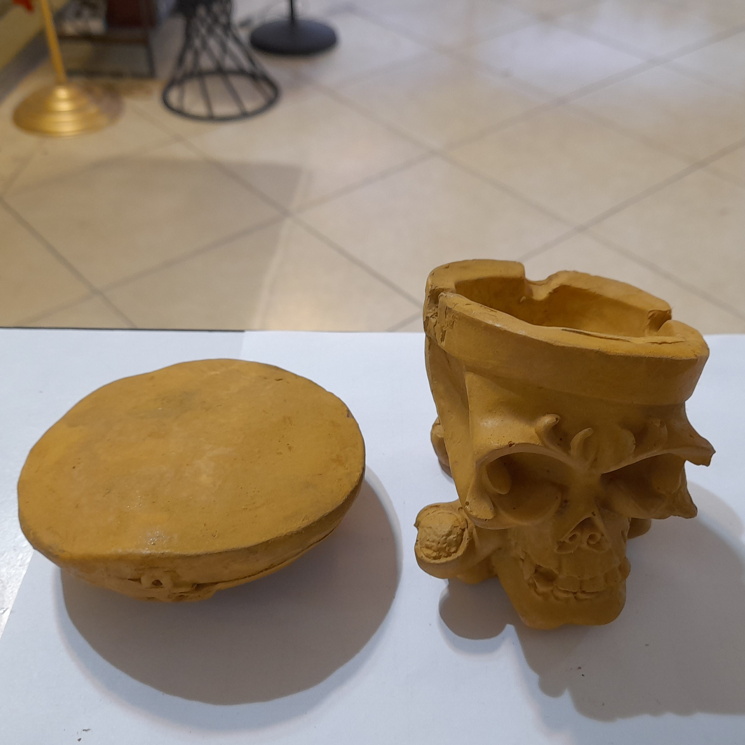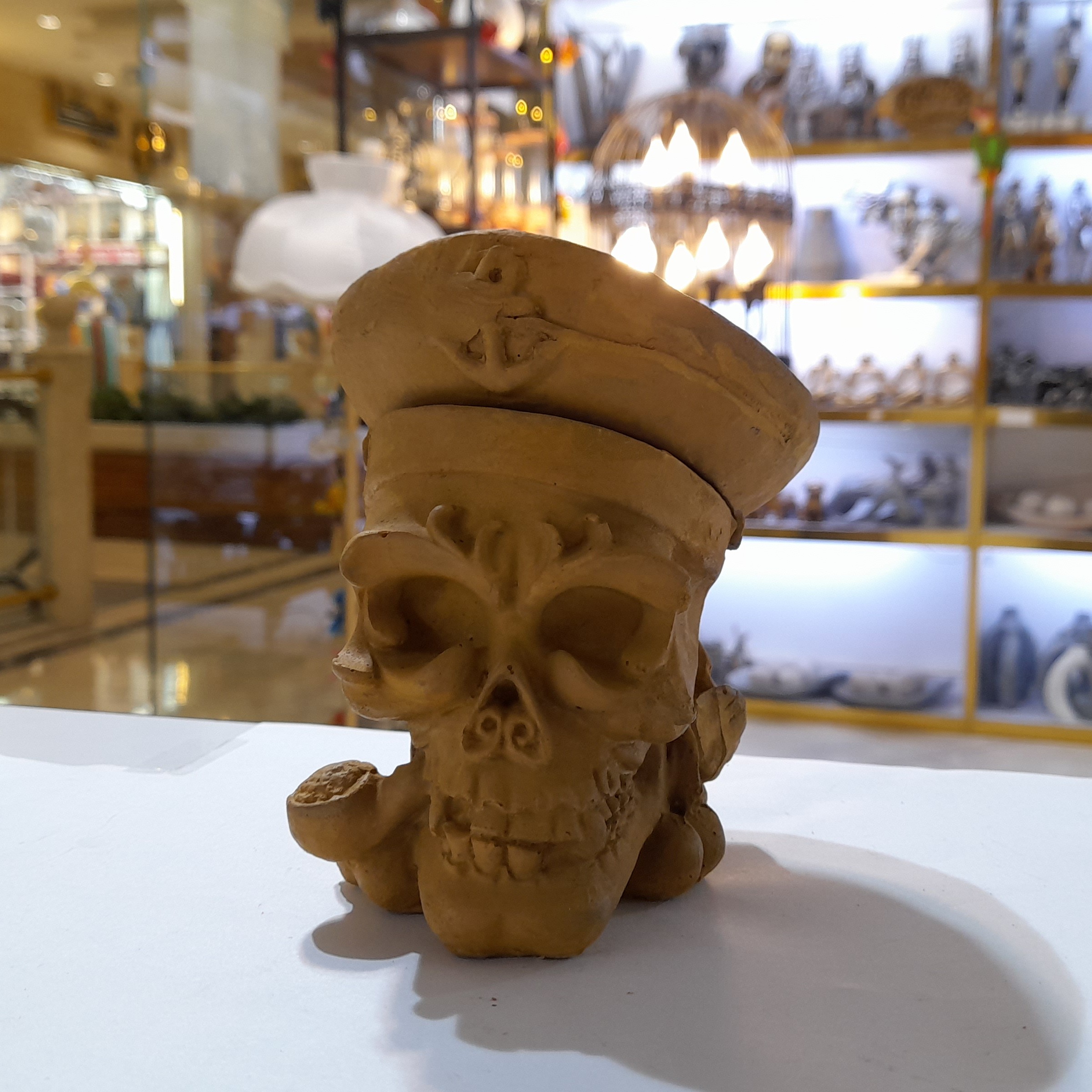 مجسمه رخ اسکلت در دار رومیزی ملوان رنگ خاک زیرسیگاری در دار پلی استری زیر سیگاری فانتزی جاجواهری اسکلتی مجسمه جمجمه انسا مبلمونسرا مدل 273282