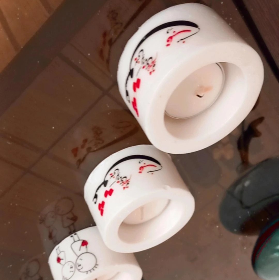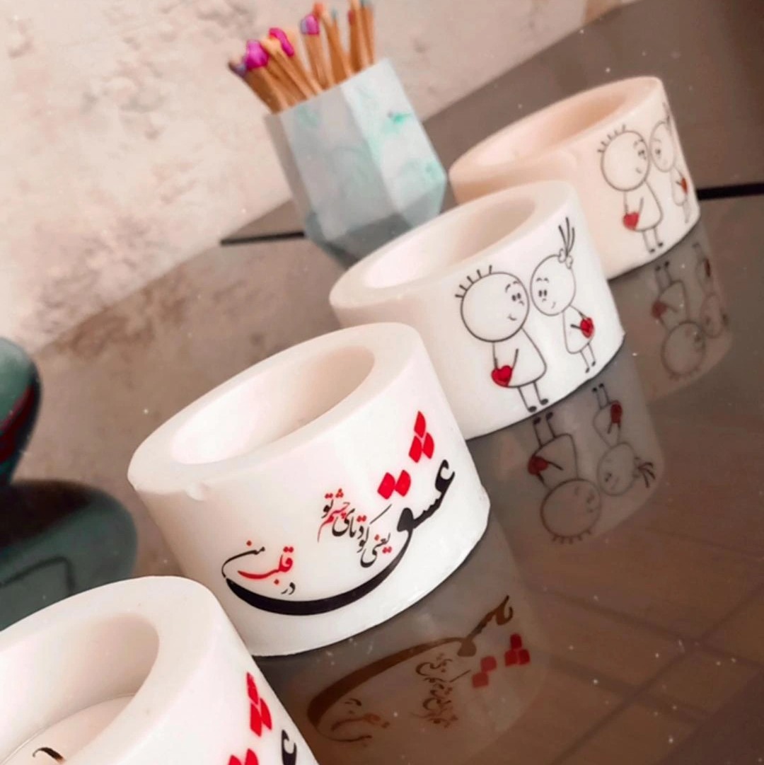 شمع فانوسی وارمر دار با ترنسفر روی شمع رنگ فانوس مطابق درخواست مشتری گل قابل اجراست تهیه شده از پارافین یک درصد و سبک