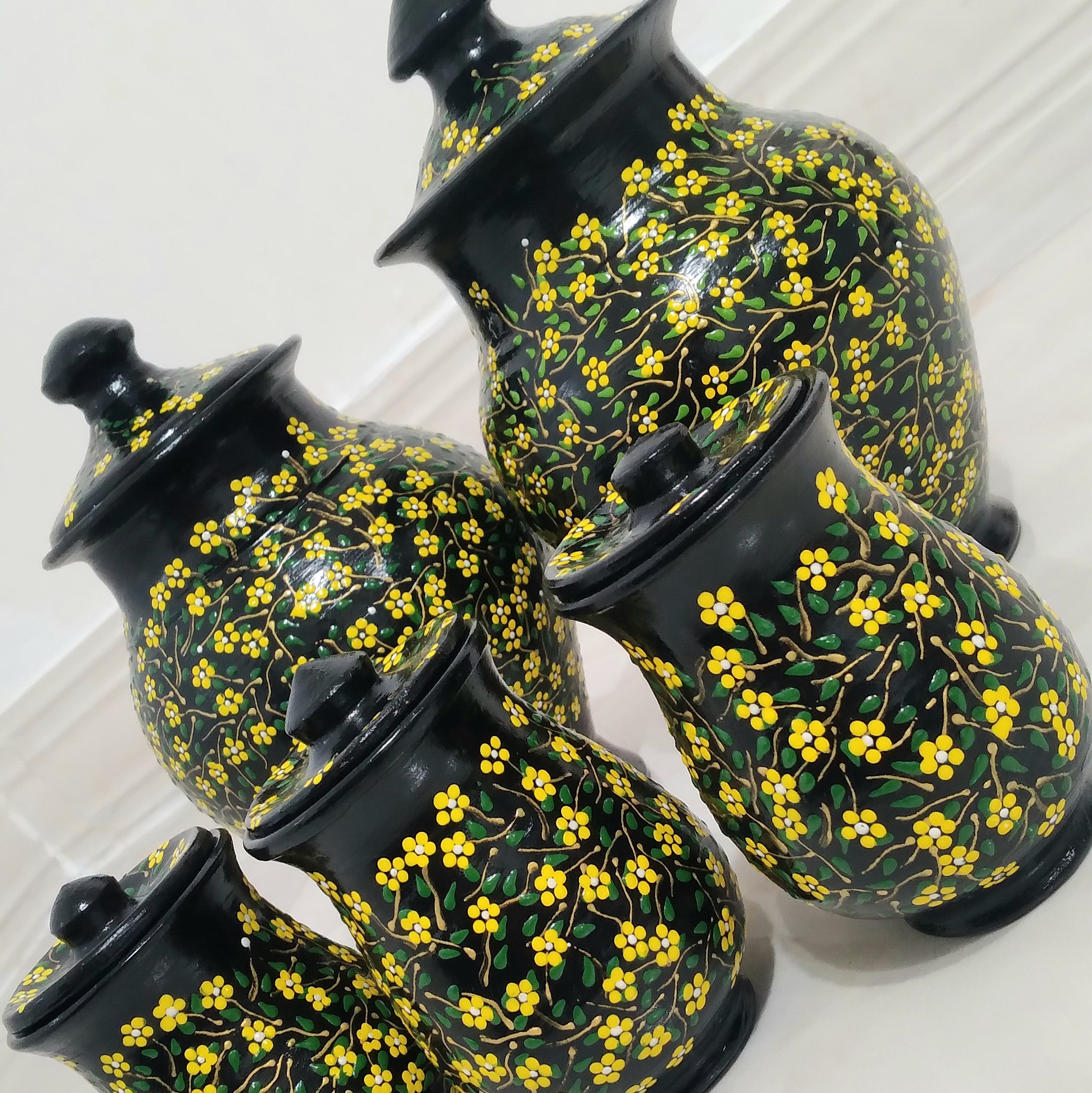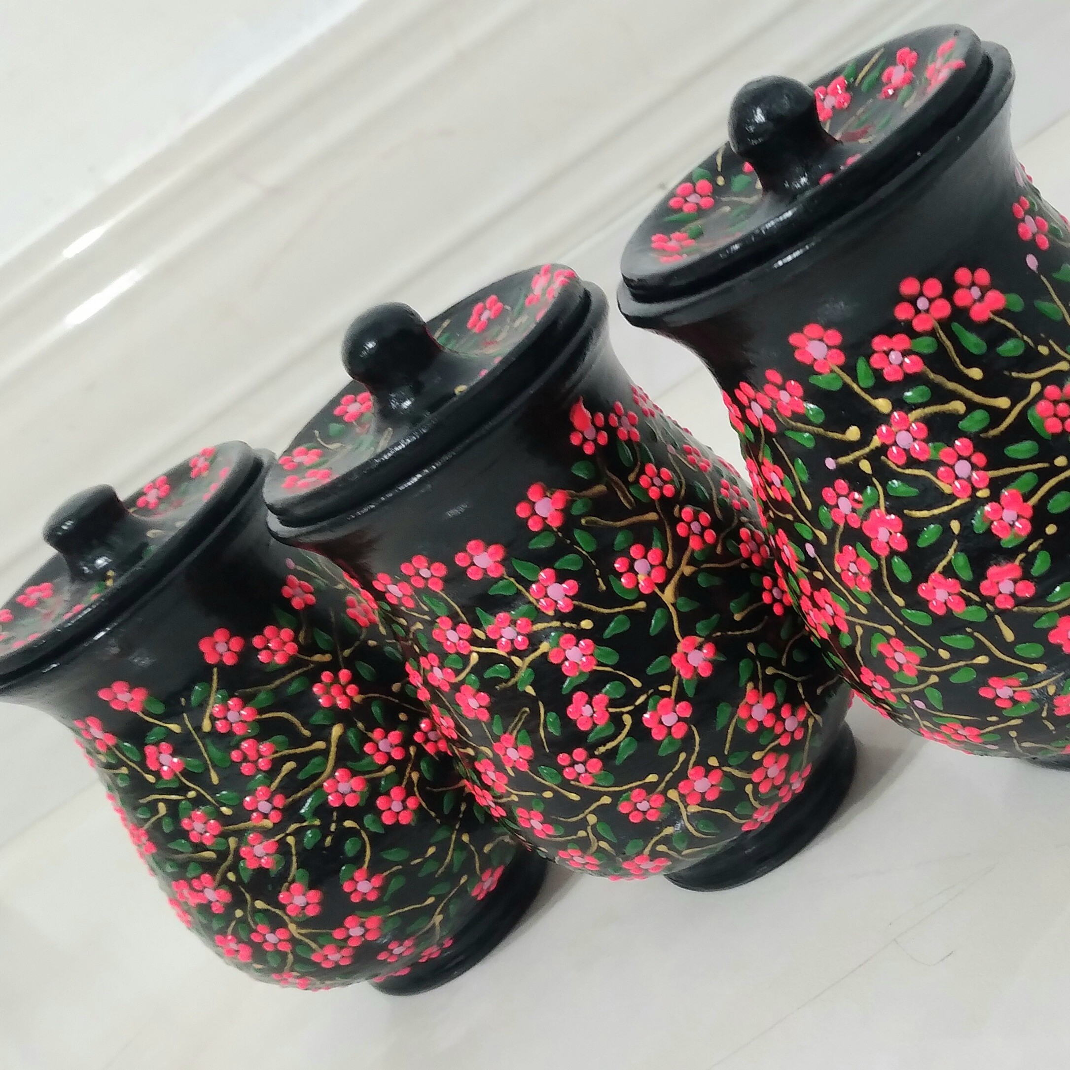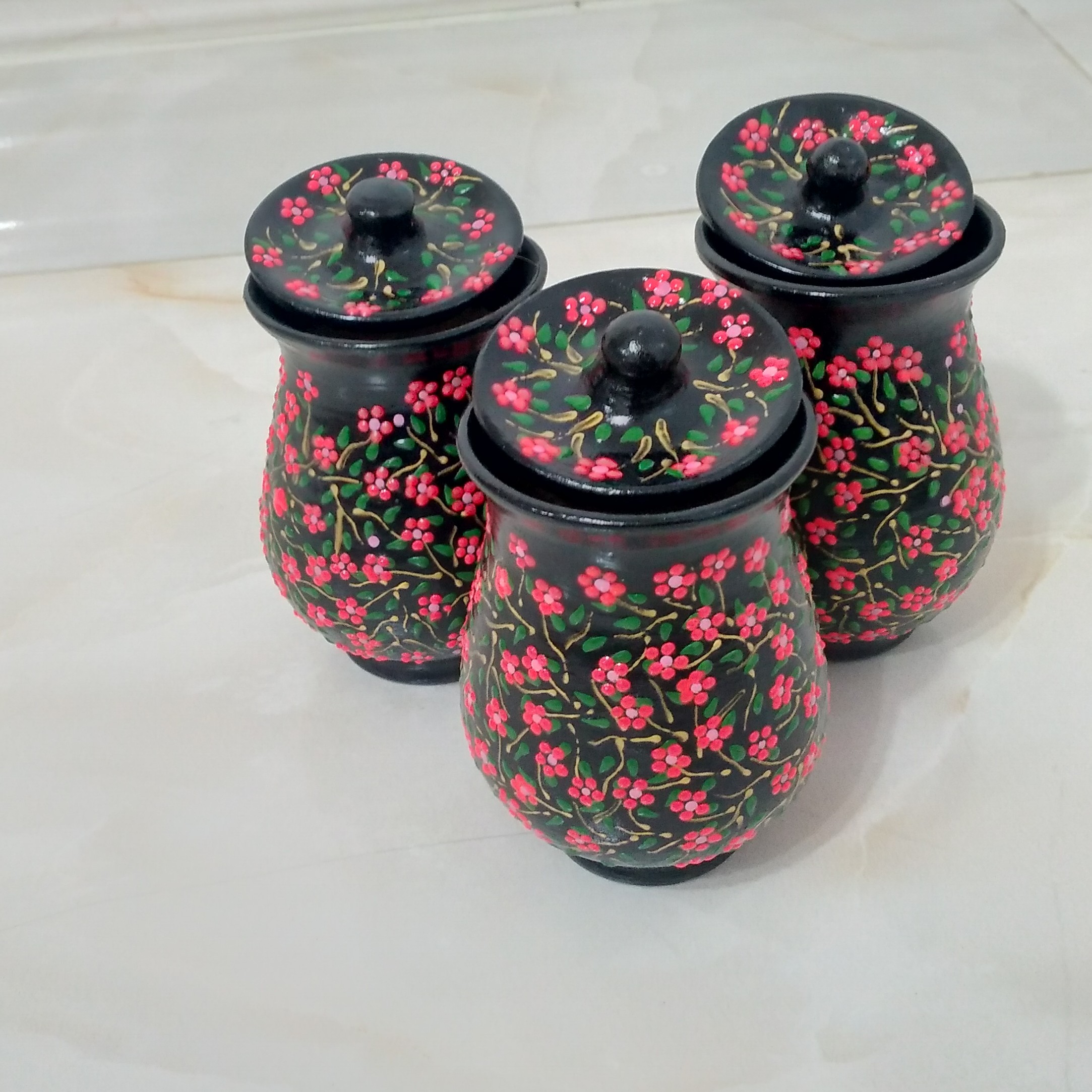 جا ادویه سفالی نقطه کوبی شده، رنگ مشکی با طرح گل، قابل سفارش در طرح و رنگ دلخواه مبلمونسرا مدل 293185