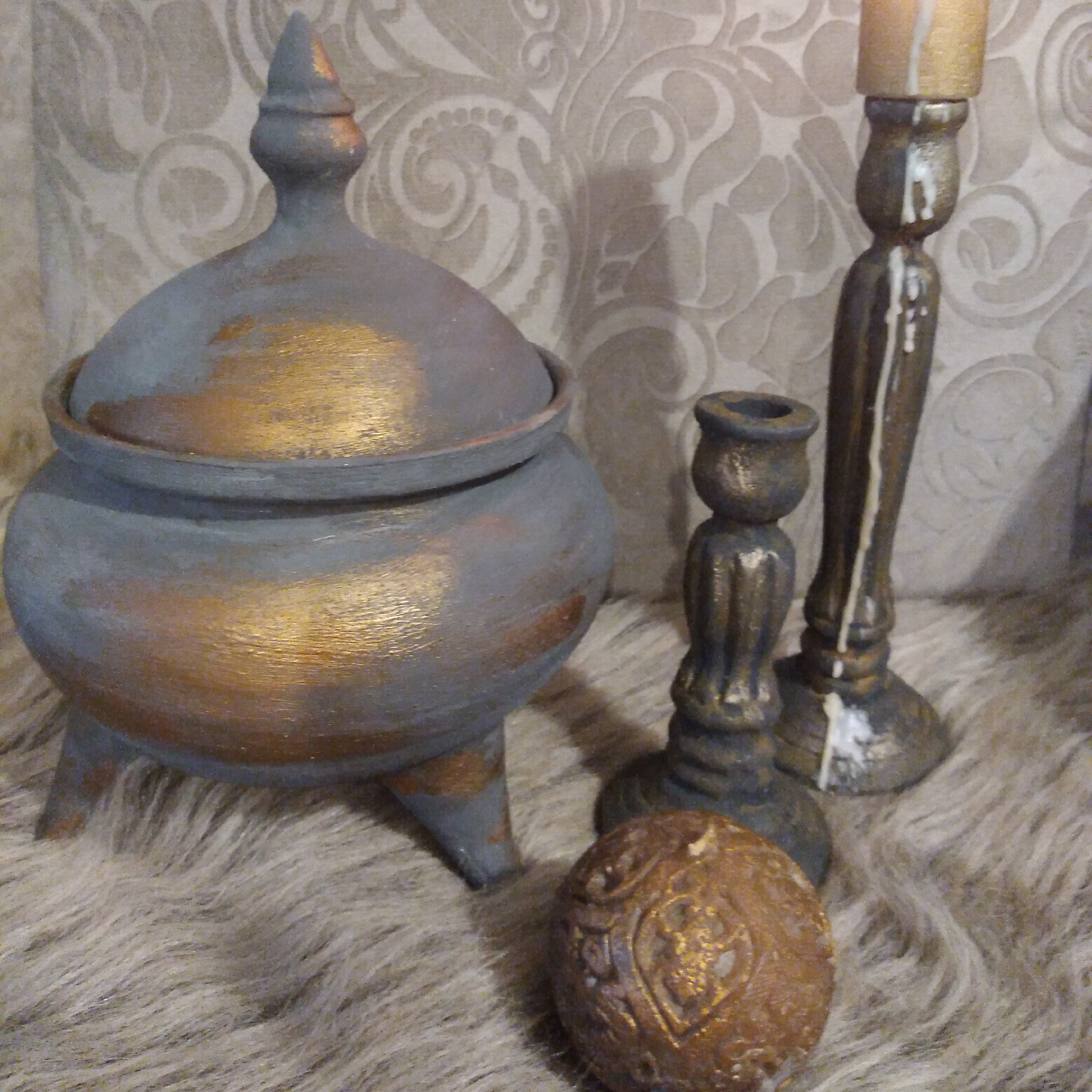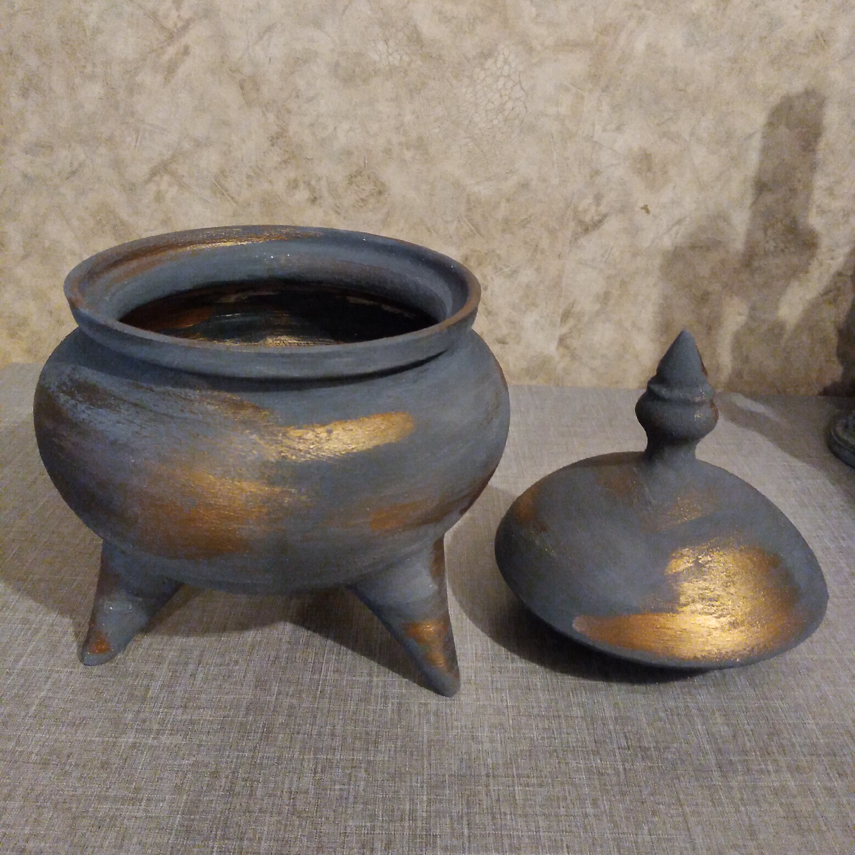 شکلاتخوری سفالی درب دار پتینه شده مبلمونسرا مدل 295092