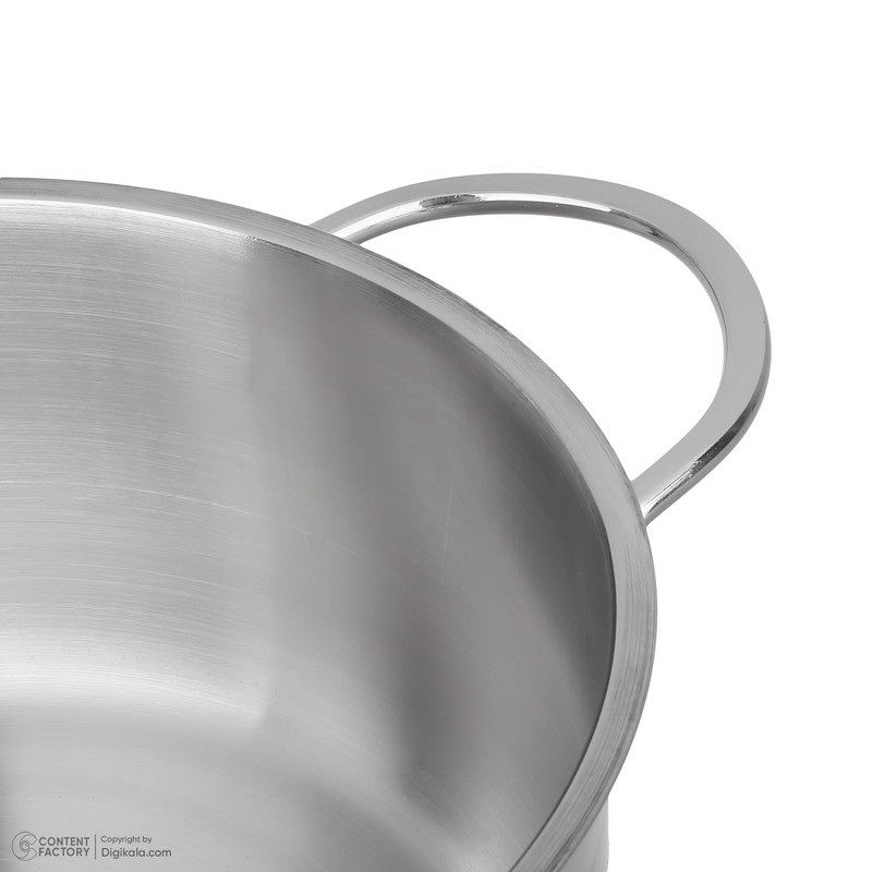 استفاده از ظروف استیل برای پخت و پز در آشپزخانه مناسب خواهد بود. این ظروف دارای قابلیت تمیز شوندگی بسیار آسانی هستند و همچنین به علت اینکه از رش شیمیایی داخل آن استفاده نشده است میتوان اطمینان داشت سلامت کافی را برای شما رقم میزنند. قابلمه استیل تکنو سایز 20 مدل فلورانس بدون هیچگونه رشی ساخته میشوند و در اثر برخورد کفگیر یا قاشقهای فلزی به کف یا بدنه، رشی از آنها جدا نشده و با غذا ترکیب نمیشود؛ درنتیجه با پخت غذا داخل قابلمههای استیل، غذاهایی خوشطعمتر طبخ خواهید کرد. استیل بهکاررفته در این مدل از کیفیت بسیار خوبی برخوردار است و دربرابر رطوبت و خط و خش مقاومت بالایی دارد؛ بنابراین برای همزدن مواد غذایی داخل قابلمه میتوانید با خیالی آسوده از کفگیر یا قاشقهای فلزی و چوبی استفاده کنید. این مدل یک عدد درپوش دارد که علاوهبر کمک به پخت بهتر و سریعتر غذا، مشاهدهی روند طبخ را برایتان ممکن میکند