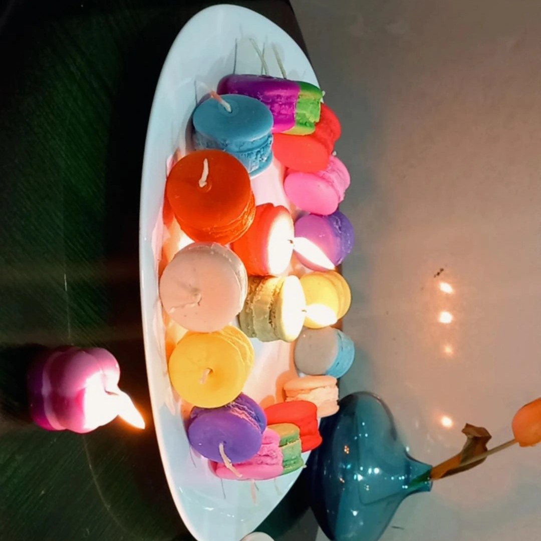 شمع دستساز ماکارون در چندین رنگبندیتهیه شده از با کیفیت ترین پارافین